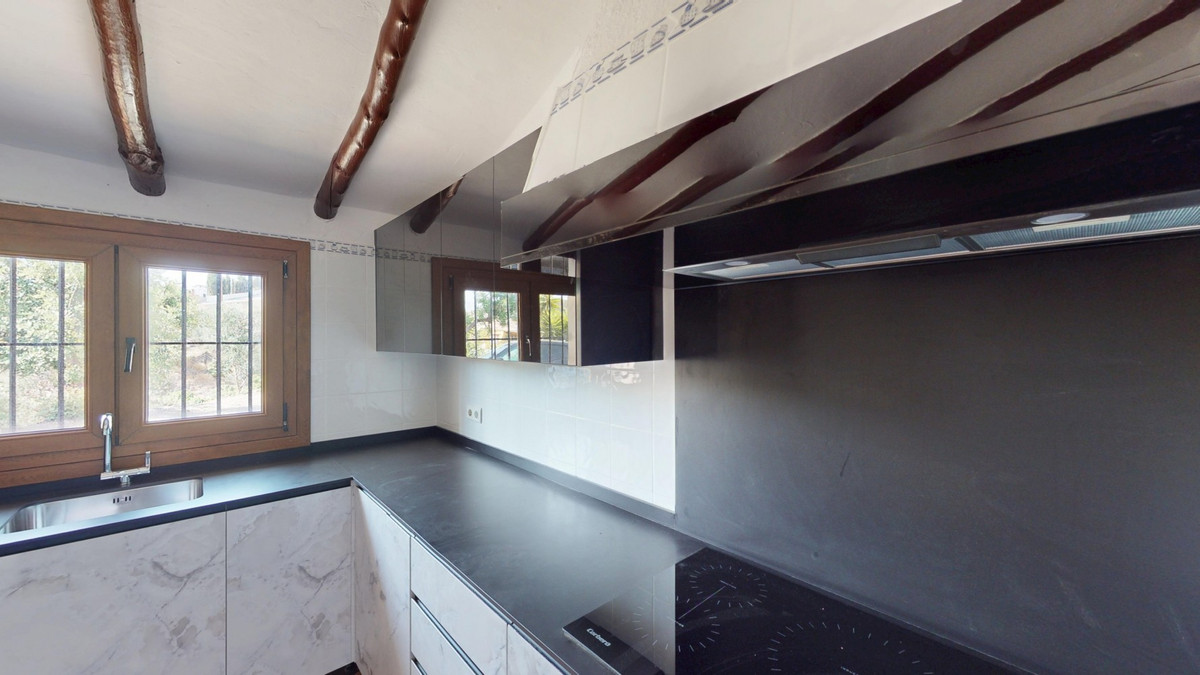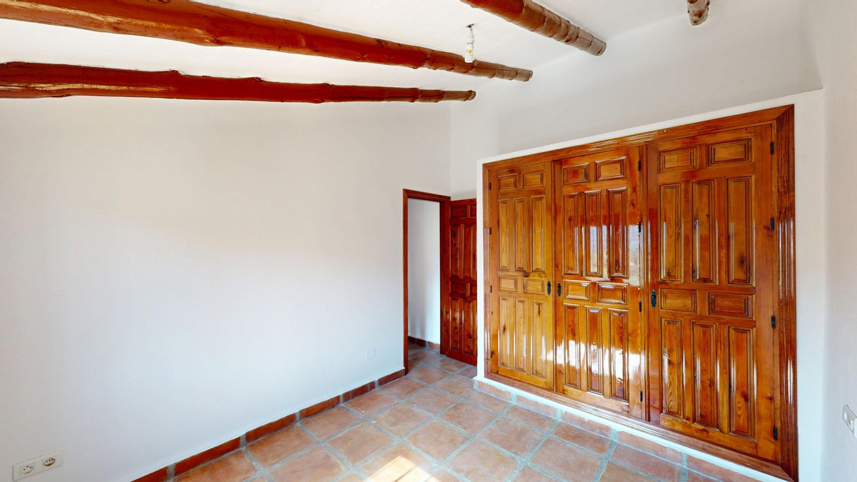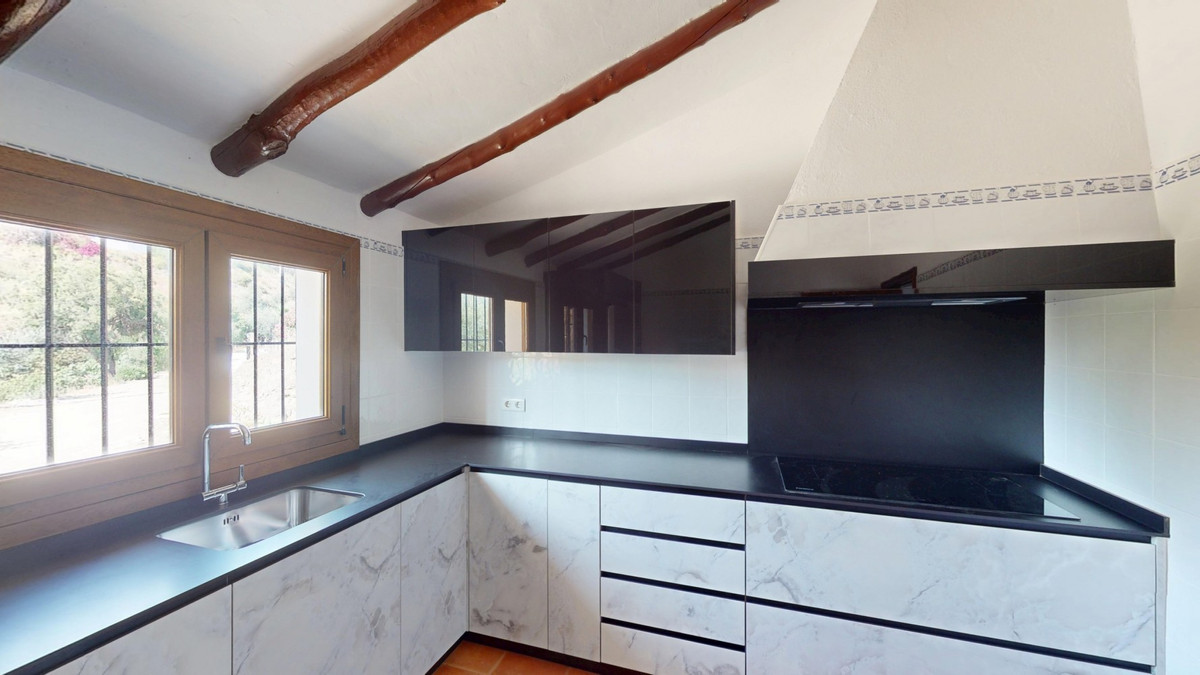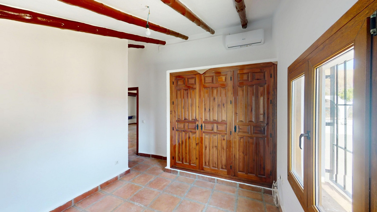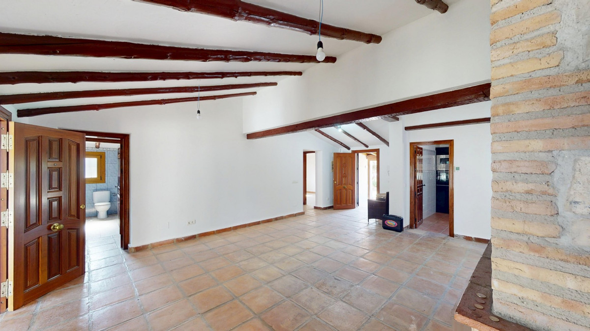 This delightful Spanish villa, located in Viñuela, Málaga, offers a perfect blend of traditional charm and modern comfort. The single-story property spans 167 m2 and features three bedrooms, including a spacious 13.9 m2 primary bedroom, and two bathrooms. Upon entering, you're greeted by the home's most striking feature: beautiful terracotta tile flooring that runs throughout, creating a cohesive and authentic Spanish ambiance. The living areas are characterized by their high, sloping ceilings with exposed wooden beams, adding rustic charm and visual interest to the space. The heart of the home is undoubtedly the living room, which boasts a magnificent stone fireplace as its centerpiece. Large windows and glass doors in this area, as well as in the bedrooms, allow ample natural light to flood the interiors while offering picturesque views of the surrounding landscape. The kitchen presents a harmonious blend of traditional and contemporary design. Modern appliances and sleek cabinetry are juxtaposed against the rustic ceiling beams, creating a functional yet aesthetically pleasing culinary space. The bathrooms, while not extensively detailed in the images, appear to have been updated with modern fixtures. Storage is thoughtfully incorporated throughout the home, with built-in wooden wardrobes in the bedrooms that maintain the overall rustic aesthetic. The property also features two patios, offering delightful outdoor spaces for relaxation and entertainment. A unique aspect of this villa is its attention to decorative details, such as the ornate tile borders in the hallways and bathrooms, which add a touch of traditional Spanish flair to the otherwise simple and elegant interiors. Outside, the villa boasts a beautiful pool and a charming outdoor area perfect for enjoying the  Mediterranean climate. Overall, this Málaga villa offers a warm, inviting atmosphere that beautifully marries traditional Spanish architectural elements with modern comforts, creating a truly special living space. We are pleased to be able to present this dream property to you soon, either personally or via virtual viewing. Because this world is unique - just like our Axarquía. In Andalusia. On the Costa del Sol. Here, on the sunny side of life...