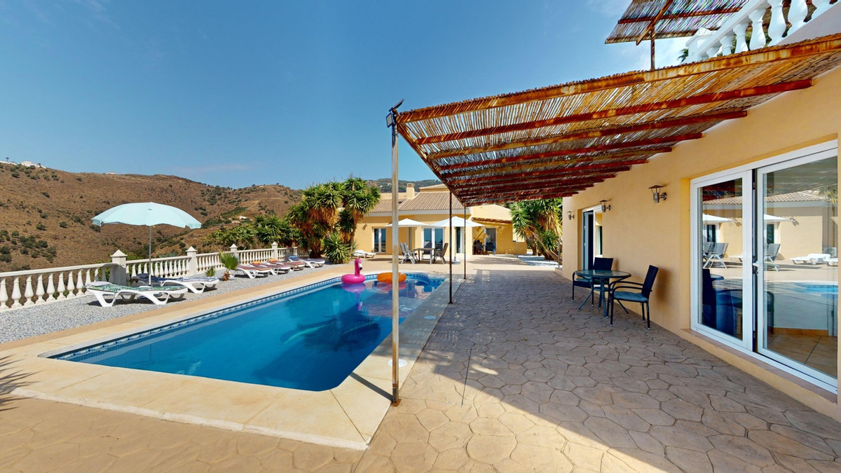 Découvrez l'incarnation même de la vie méditerranéenne avec cette finca exclusive à Algarrobo, située sur la magnifique Costa del Sol. Nichée dans une intimité absolue, cette propriété unique offre une vue panoramique à couper le souffle sur la Méditerranée scintillante et la campagne andalouse environnante. Avec une surface habitable totale de près de 190 m² et un terrain de 2 445 m², cette finca promet luxe et tranquillité. La propriété comprend cinq chambres spacieuses et trois salles de bains modernes, idéales pour recevoir famille et amis. Le cœur de la maison est un élégant salon avec une cheminée chaleureuse, donnant sur une cuisine américaine contemporaine équipée d'appareils haut de gamme. À l'extérieur, vous trouverez une piscine accueillante située entre la maison principale et les dépendances, offrant un espace parfait pour se détendre ou recevoir tout en profitant de la vue imprenable. Pour les amoureux de la nature, le vaste terrain offre l'opportunité idéale de cultiver votre propre paradis tropical, qu'il s'agisse d'une manguiererie, d'une plantation d'avocatiers ou d'orangers, comme vous en avez pu voir à la télévision. Cette finca offre un parfait mélange de luxe, d'intimité et de charme andalou, à quelques minutes seulement des plages de la Costa del Sol et de toutes les commodités. Bien plus qu'une simple propriété, c'est un art de vivre. Imaginez-vous vous réveiller chaque matin au son des vagues et sous la douce chaleur du soleil espagnol. Explorez la galerie photos ou effectuez une visite virtuelle 3D pour apprécier la beauté et la sérénité de cette demeure unique. Si vous rêvez d'une vie ensoleillée, cette finca à Algarrobo vous attend. Contactez-nous dès aujourd'hui pour organiser une visite privée et faire de ce coin de paradis andalou votre chez-vous.