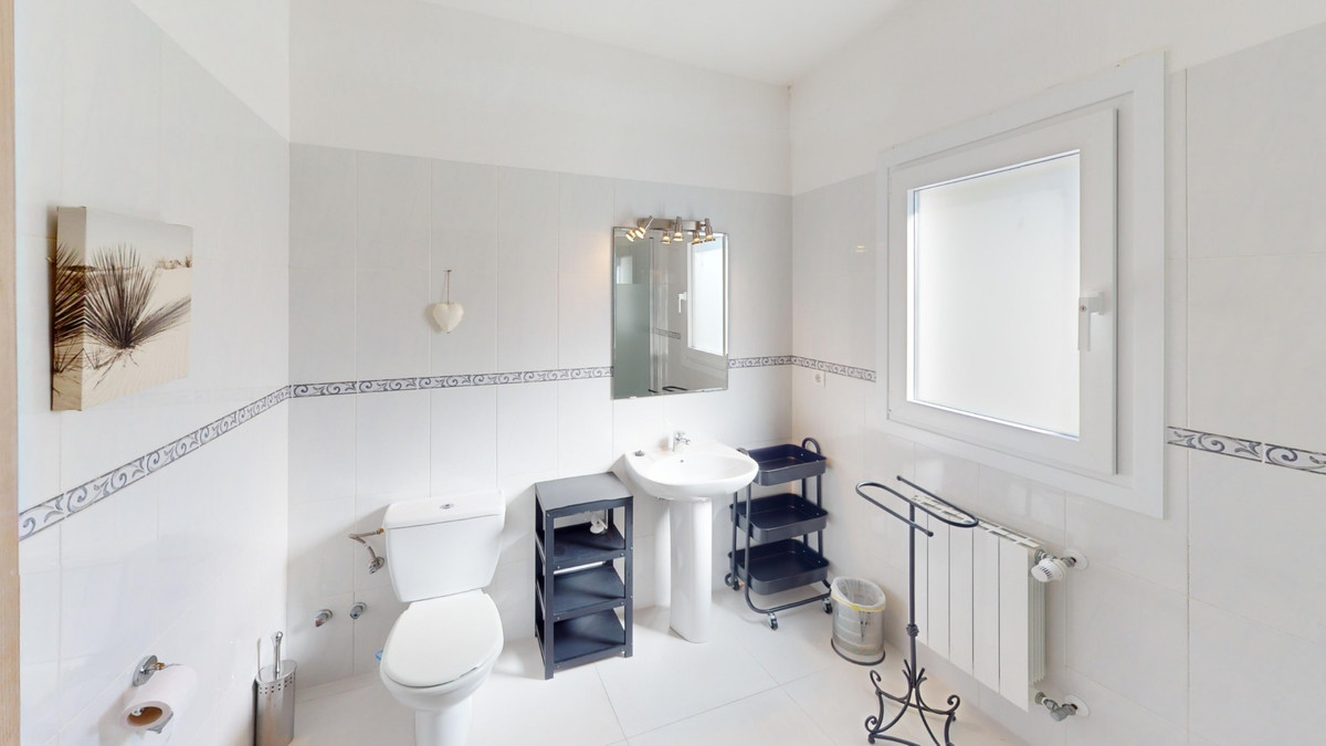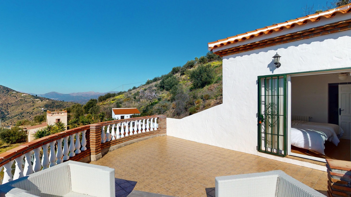 Cette villa récemment rénovée bénéficie d'un emplacement exceptionnel sur le mont Bentomiz à Arenas, à seulement 5 minutes du charmant village d'Arenas et ses maisons blanchies à la chaux, à 20 minutes des plages d'Algarrobo Costa et à 50 minutes de l'aéroport de Málaga. Elle offre un équilibre parfait entre tranquillité et accessibilité. La propriété se distingue par sa luminosité, son design moderne et ses finitions haut de gamme. Elle comprend un vaste séjour/salle à manger ouvert et une cuisine moderne entièrement équipée avec des appareils haut de gamme, dont une plaque de cuisson au gaz, un four, un lave-vaisselle et un réfrigérateur-congélateur intégré. La salle à manger s'ouvre sur une terrasse couverte, idéale pour se détendre ou prendre ses repas en plein air. La villa dispose de 3 chambres et 3 salles de bains, dont deux privatives. Au rez-de-chaussée, une chambre possède une salle de bains privative avec douche, WC et lavabo, ainsi que la climatisation. La deuxième chambre dispose d'une salle de bains séparée avec baignoire, douche, WC et lavabo. La suite parentale, située à l'étage, est climatisée et dispose d'une salle de bains privative avec douche, WC et lavabo, d'un dressing et d'un accès direct à une terrasse sur le toit offrant une vue panoramique imprenable et des couchers de soleil inoubliables. Toutes les chambres et le salon sont équipés de ventilateurs de plafond pour un confort optimal en été. L'espace extérieur comprend une piscine d'eau salée chauffée automatisée de 9,5 mètres sur 5 et un système d'arrosage automatique pour un jardin impeccable. La propriété bénéficie également d'un puits commun et d'une citerne d'une capacité de 12 000 litres. Plusieurs terrasses ombragées agrémentent l'espace extérieur, dont une peut être fermée par un store rétractable. La villa est dotée d'équipements de pointe, notamment 8 panneaux solaires avec un onduleur de 6 kW, le chauffage central, l'eau chaude sanitaire par chaudière à gaz, des fenêtres et portes à double vitrage avec système anti-effraction, un système de sécurité complet avec surveillance 24h/24 et 7j/7 et un système domotique contrôlant l'éclairage, la pompe à chaleur, les panneaux solaires et le niveau d'eau de la citerne. Cette propriété allie harmonieusement confort, style et durabilité dans un cadre exceptionnel. Contactez-nous dès aujourd'hui pour plus d'informations ou pour programmer une visite, en personne ou virtuelle.