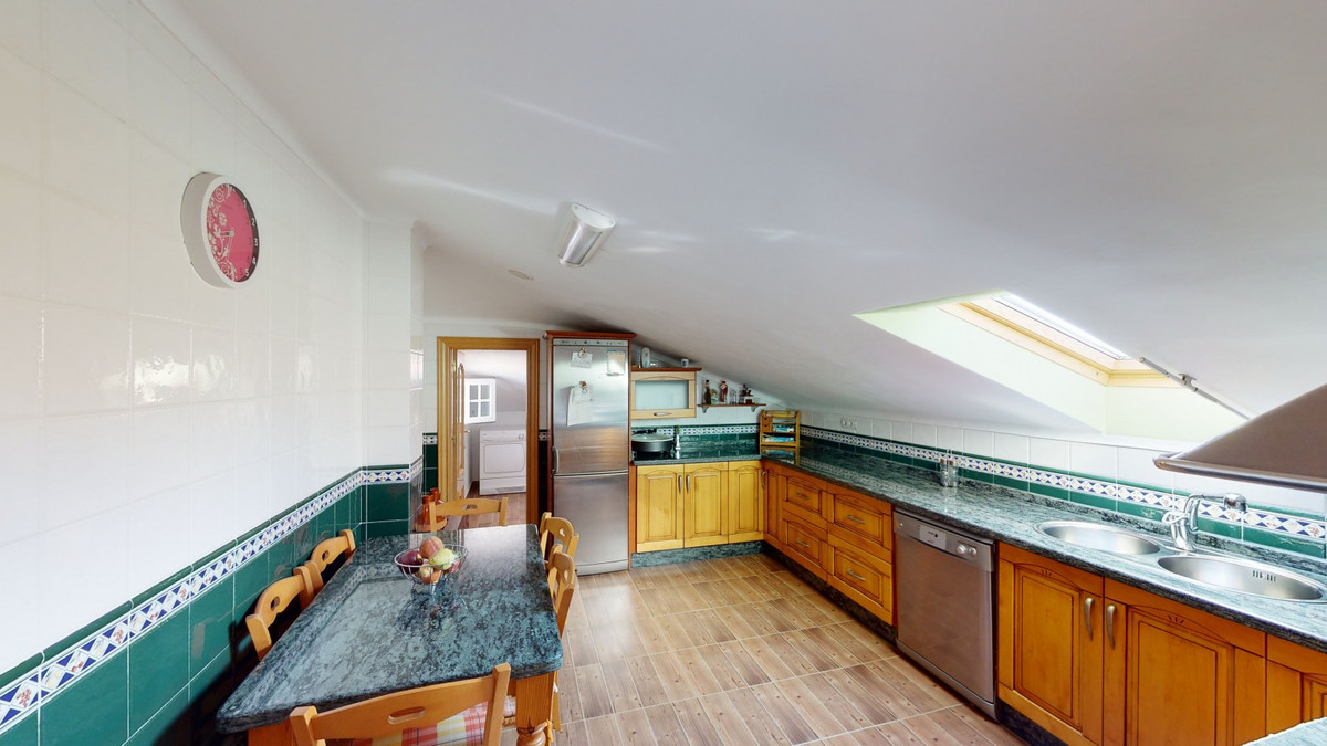 Cette spacieuse villa, idéalement située, offre la possibilité à deux familles de vivre séparément. Le garage de 217 m² peut accueillir 5 voitures et comprend un bureau et un espace de rangement. Accès au jardin avec une belle piscine, une douche, des arbres fruitiers et un poulailler. Une pièce indépendante abrite une cuisine/barbecue supplémentaire et une terrasse couverte. Le rez-de-chaussée de 216 m² comprend un hall d'entrée, un vaste séjour, une grande cuisine attenante entièrement équipée, un cellier et une grande terrasse extérieure. Trois salles de bains, trois chambres avec placards intégrés et climatisation réversible. Une buanderie peut être aménagée en chambre. L'étage de 159 m² comprend un séjour avec haut plafond, une cuisine entièrement équipée avec cellier, une buanderie, une salle de bains et une terrasse extérieure. Construite avec des matériaux de grande qualité et selon des standards très élevés, la maison a été réalisée par le propriétaire lui-même. Nous serions ravis de vous présenter prochainement cette propriété de rêve, en personne ou par visite virtuelle. Car ce monde est unique, à l'image de notre Axarquía. En Andalousie. Sur la Costa del Sol. Ici, sous le soleil…