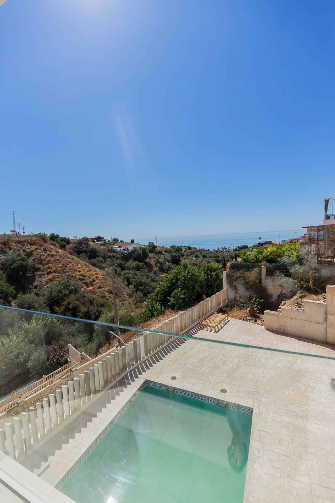 La villa dispose de 5 chambres spacieuses et a été conçue dans un style moderne, avec des espaces ouverts et lumineux, intégrant harmonieusement l'intérieur et l'extérieur grâce à de grandes baies vitrées et un accès direct aux terrasses. De là, vous pourrez admirer des vues spectaculaires sur la mer et la nature environnante.