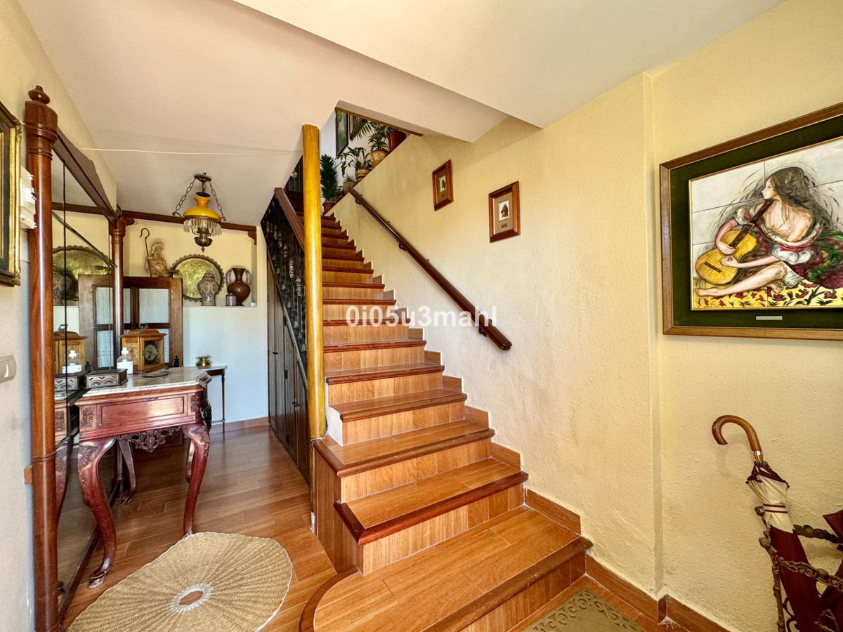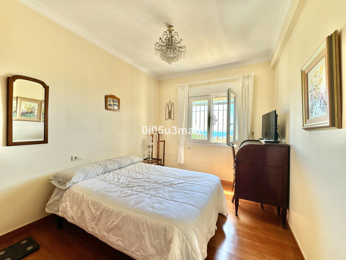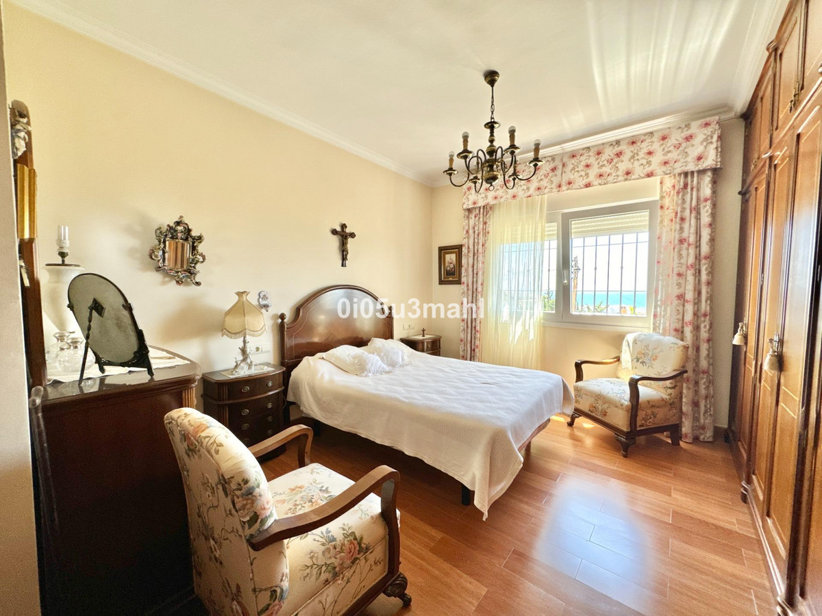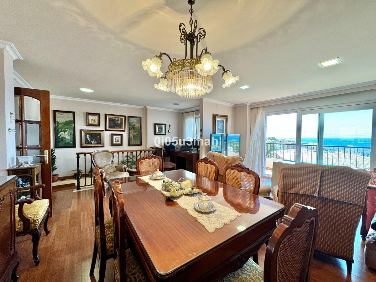 La maison, rénovée en 2006, se déploie sur deux niveaux. Au rez-de-chaussée, on trouve un salon avec cheminée, une grande chambre et une salle de bains. Un escalier confortable mène au premier étage où se situe un vaste et lumineux séjour indépendant donnant accès à une grande terrasse offrant une vue imprenable sur la baie de Malaga. La cuisine indépendante, équipée d'appareils électroménagers et agencée avec soin, se distingue par sa fonctionnalité et son espace. Elle offre un environnement polyvalent et bien organisé, avec un accès aisé aux espaces extérieurs pour profiter de repas en plein air. L'étage comprend également quatre chambres spacieuses, dont trois avec vue sur mer, et deux salles de bains, dont une privative.
