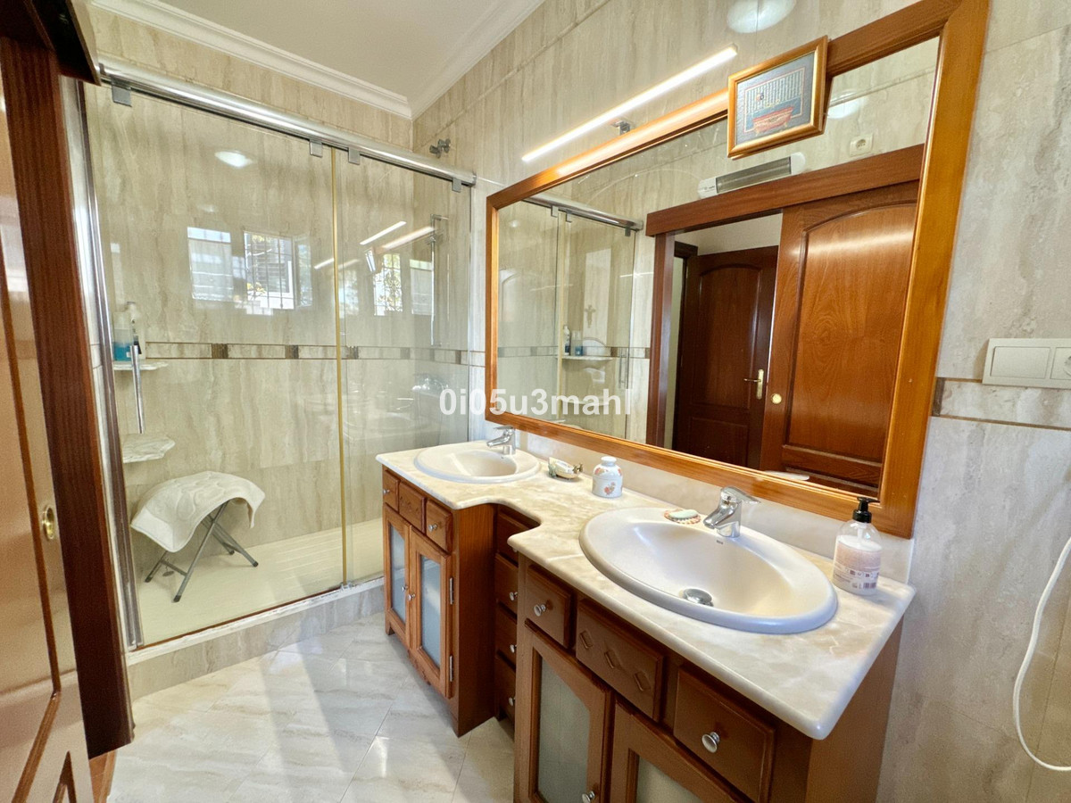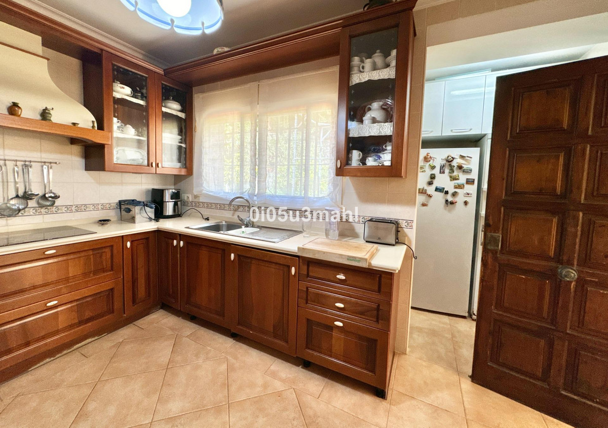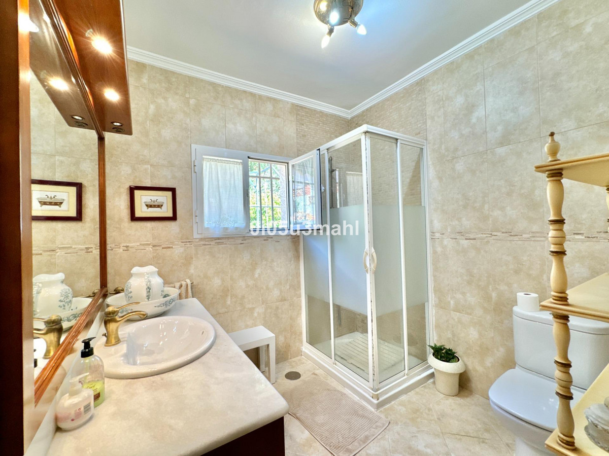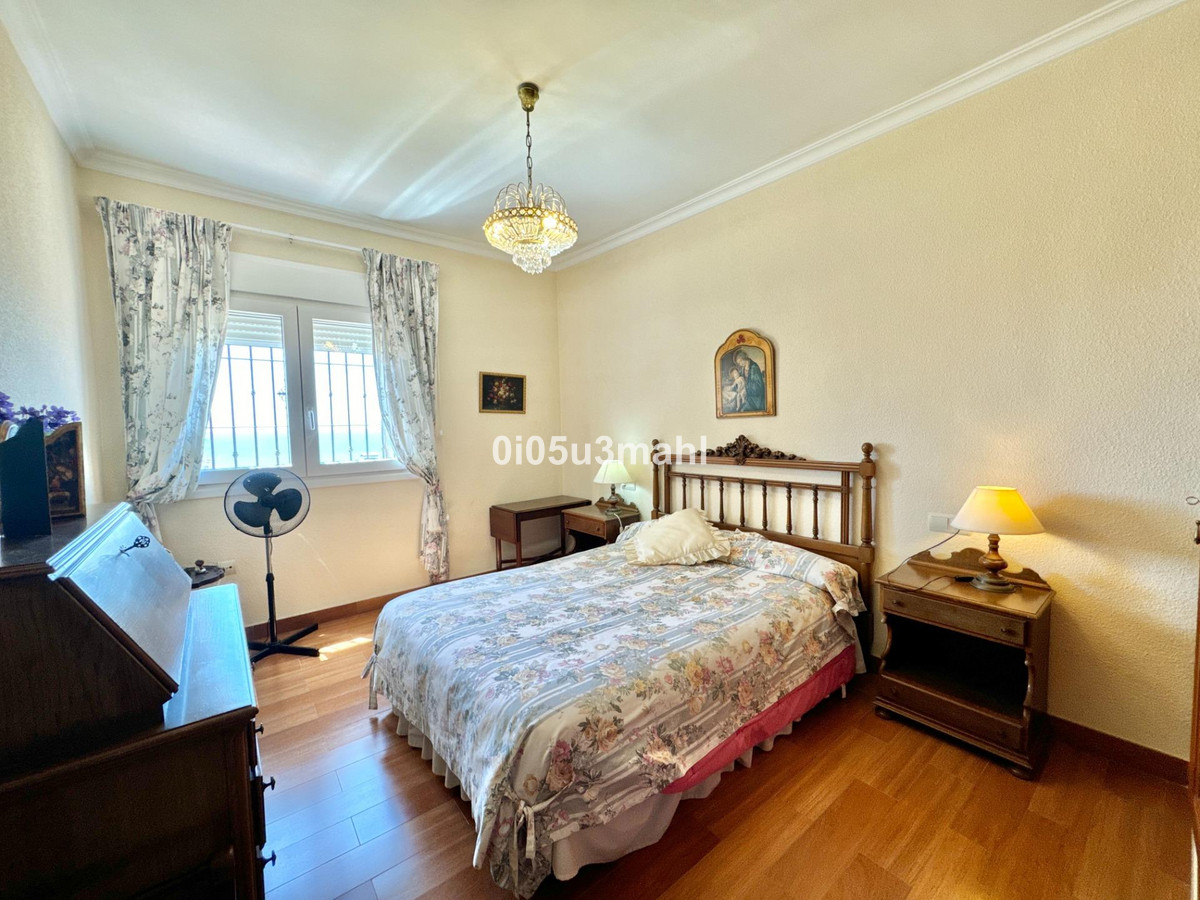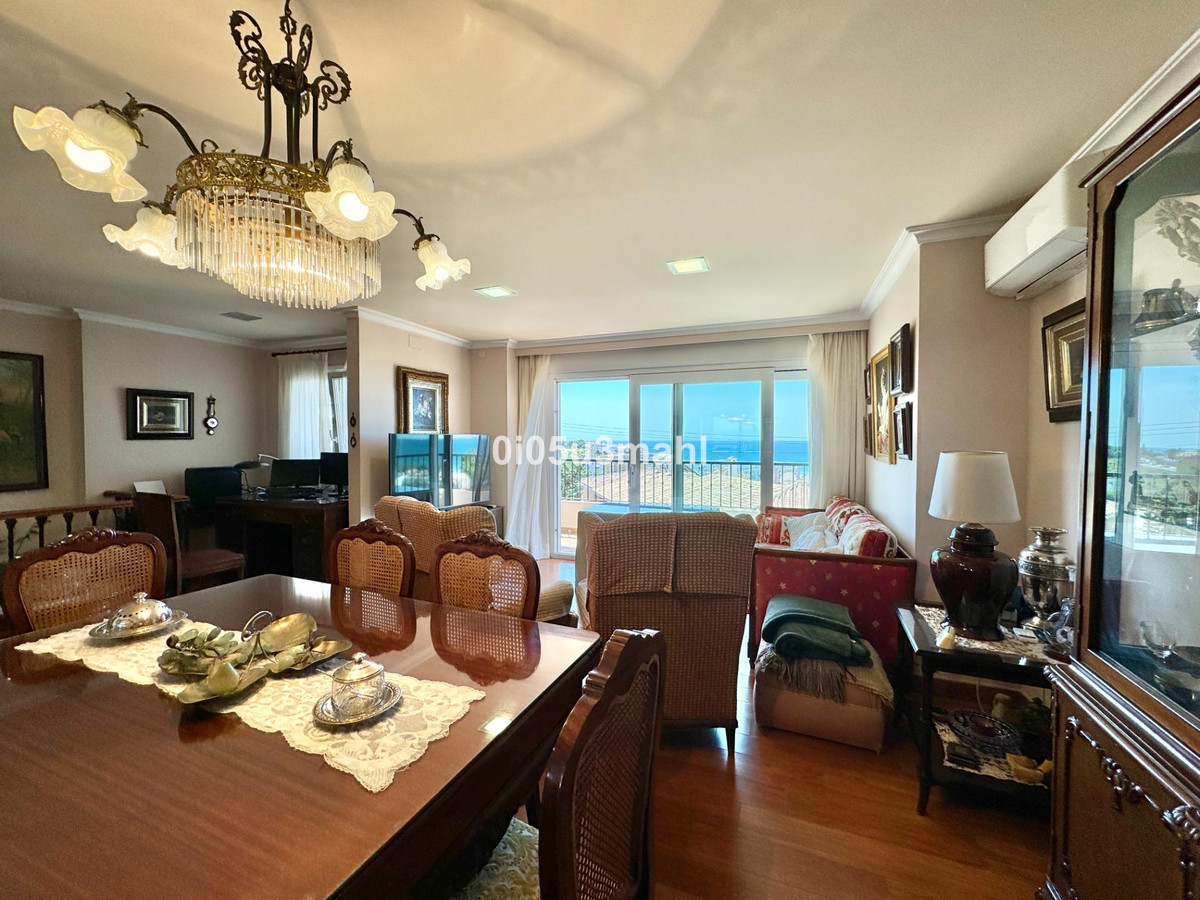 La maison, rénovée en 2006, se déploie sur deux niveaux. Au rez-de-chaussée, on trouve un salon avec cheminée, une grande chambre et une salle de bains. Un escalier confortable mène au premier étage où se situe un vaste et lumineux séjour indépendant donnant accès à une grande terrasse offrant une vue imprenable sur la baie de Malaga. La cuisine indépendante, équipée d'appareils électroménagers et agencée avec soin, se distingue par sa fonctionnalité et son espace. Elle offre un environnement polyvalent et bien organisé, avec un accès aisé aux espaces extérieurs pour profiter de repas en plein air. L'étage comprend également quatre chambres spacieuses, dont trois avec vue sur mer, et deux salles de bains, dont une privative.