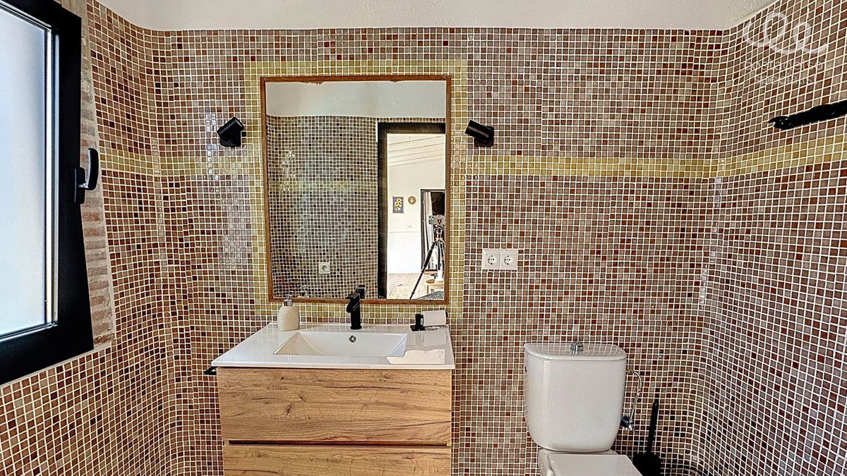 La maison principale offre au rez-de-chaussée un vaste séjour, une cuisine moderne et des toilettes invités. À l'étage, vous trouverez trois chambres lumineuses et une salle de bains élégante, agencées pour plus d'intimité et de confort. Cette partie du cortijo possède sa propre entrée et est totalement indépendante ; idéale pour y vivre à l'année ou comme refuge privé.