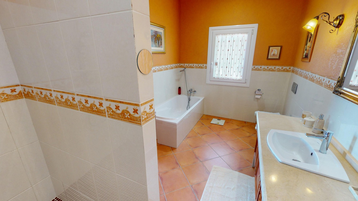 À vendre : une villa à couper le souffle située dans le cadre pittoresque d'Algarrobo, répondant à toutes vos envies et attentes d'une demeure de luxe. Cette propriété exceptionnelle impressionne non seulement par ses vues imprenables sur la mer, mais aussi par sa piscine à débordement qui se fond harmonieusement dans l'horizon, vous donnant l'impression de ne faire qu'un avec l'océan. La villa dispose de trois chambres spacieuses, chacune élégamment meublée et équipée d'une salle de bains privative, garantissant un confort et une intimité optimaux. Le séjour/salle à manger ouvert, avec sa cuisine moderne entièrement équipée, offre un espace généreux pour des soirées conviviales en famille ou entre amis. De larges baies vitrées laissent entrer une abondante lumière naturelle et offrent une vue imprenable sur la mer scintillante. Le chauffage au sol assure une atmosphère chaleureuse et confortable tout au long de l'année. De là, vous accédez à la terrasse couverte, véritable espace de vie extérieur supplémentaire. C'est l'endroit idéal pour admirer les couchers de soleil spectaculaires et les vues panoramiques sur le littoral. Le jardin soigné invite à la détente et offre un vaste espace pour vos loisirs. Une buanderie séparée avec de nombreux rangements ajoute au confort et à la praticité de cette villa. Plusieurs places de parking sont à votre disposition, vous assurant un séjour confortable et sécurisé. La villa bénéficie d'un emplacement paisible et idyllique, tout en offrant un accès facile aux commodités environnantes. Ici, vous profiterez d'une intimité et d'une détente absolues dans l'une des plus belles régions de la Costa del Sol. Cette propriété se distingue par la qualité exceptionnelle de sa construction et ses prestations exclusives. C'est le choix idéal pour ceux qui recherchent un bien d'exception et apprécient un style de vie luxueux dans un cadre unique. Laissez-vous charmer par cette villa de rêve et découvrez le meilleur de la vie ! Nous serons ravis de vous présenter prochainement cette propriété de rêve, en personne ou par visite virtuelle. Car ce monde est unique, à l'image de notre Axarquía. En Andalousie. Sur la Costa del Sol. Ici, sous le soleil…