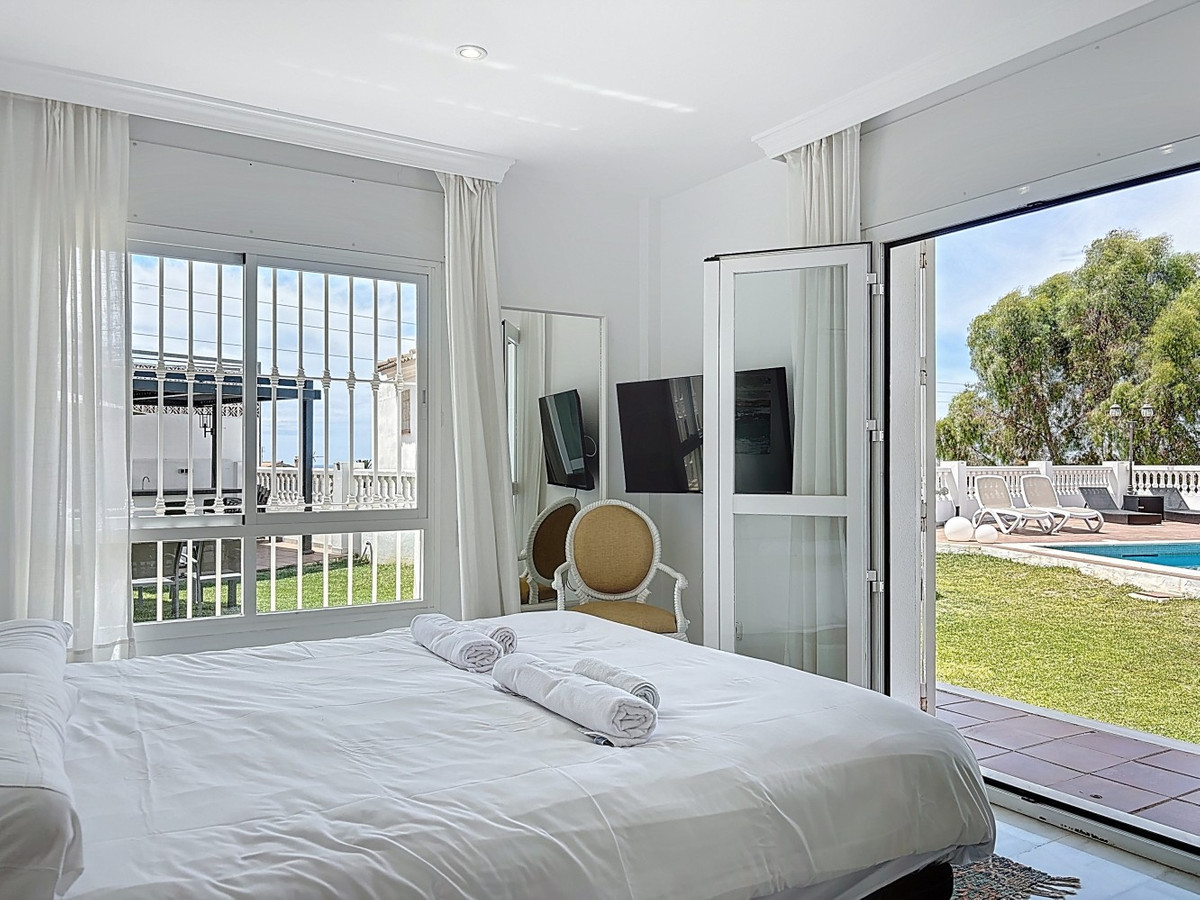 Cette magnifique villa moderne à Caleta de Vélez offre de vastes espaces de vie, une vue imprenable sur la mer et de superbes espaces extérieurs, à quelques minutes seulement de la plage, du port de plaisance et du golf. Au niveau principal (premier étage), vous trouverez une cuisine neuve entièrement équipée avec une buanderie séparée, une salle de bain complète et un espace de vie ouvert exceptionnellement spacieux comprenant salle à manger et salon. Ce dernier s'ouvre sur une terrasse offrant une vue panoramique sur la mer. Grâce à son orientation sud-ouest, cet espace bénéficie d'une luminosité naturelle abondante tout l'après-midi et de couchers de soleil spectaculaires. Le rez-de-chaussée comprend deux chambres d'amis confortables, chacune avec placards intégrés et accès direct au jardin, ainsi qu'une salle de bain complète. La suite parentale, plus spacieuse, dispose également de placards intégrés, d'une salle de bain privative et d'un accès au jardin. Ce dernier abrite une grande piscine d'environ 12 mètres sur 6 et un espace barbecue extérieur, idéal pour recevoir ou se détendre au soleil. Un sous-sol avec salle de bain privative offre un espace modulable pouvant facilement être transformé en salle de sport, bureau, second salon, salle de jeux pour enfants, voire en appartement indépendant. La propriété comprend également un garage privé pour une voiture et deux places de parking supplémentaires. Cette villa allie confort moderne et emplacement privilégié en bord de mer, ce qui en fait une résidence principale idéale, une maison de vacances ou un investissement locatif. Les visites sont fortement recommandées. Nous serons ravis de vous présenter prochainement cette propriété de rêve, en personne ou virtuellement. Car ce monde est unique, à l'image de notre Axarquía. En Andalousie. Sur la Costa del Sol. Ici, sous le soleil…