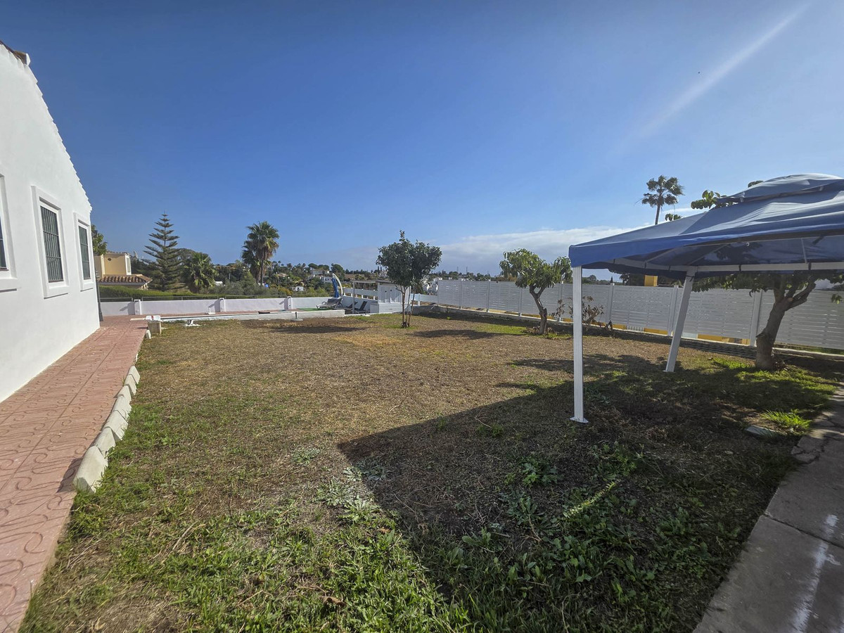Cette charmante villa individuelle se situe dans un quartier résidentiel paisible d'Estepona, à seulement cinq minutes en voiture du centre-ville et de ses commodités. Sise sur un terrain généreux de 935 m², la propriété offre intimité, espace et un cadre de vie confortable au cœur d'un écrin de verdure, ce qui en fait un choix idéal comme résidence principale ou secondaire.