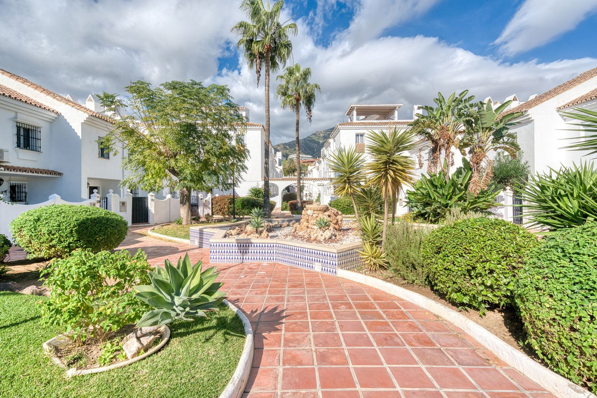 Les deux chambres doubles offrent un havre de paix et de confort. La chambre principale dispose de sa propre salle de bains privative, tandis que la seconde chambre offre une grande flexibilité pour accueillir des invités, la famille ou pour le télétravail. Chaque salle de bains est équipée d'installations modernes et d'un carrelage raffiné, alliant fonctionnalité et élégance discrète. Le cadre exceptionnel contribue à un cadre de vie privilégié. Pueblo del Sol est réputé pour ses façades blanchies à la chaux, ses toits de tuiles, ses bougainvillées en fleurs et ses ruelles piétonnes tranquilles qui créent une authentique ambiance andalouse. Au cœur de la résidence se trouve une magnifique piscine entourée de verdure, un lieu serein idéal pour se détendre durant les longs étés de la Costa del Sol.