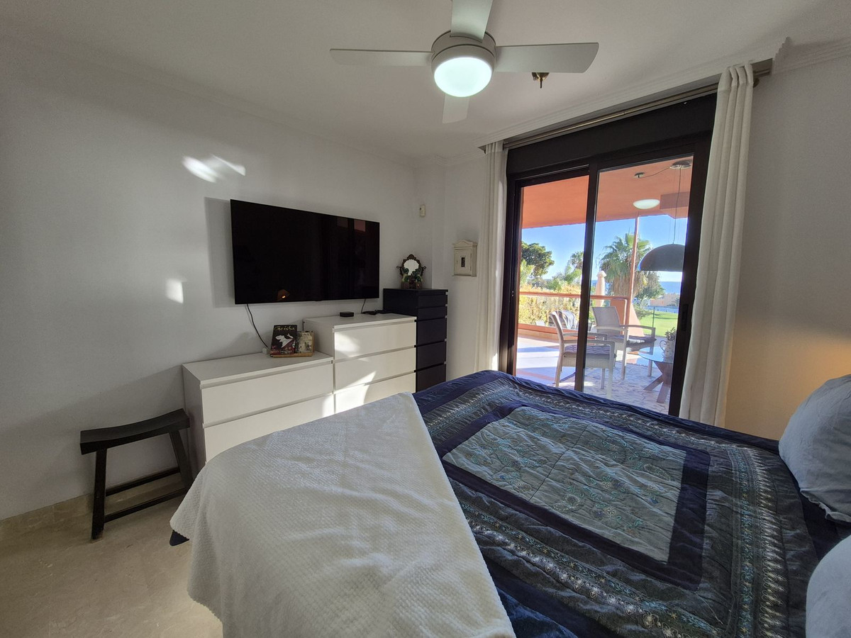 This is a wonderful ground-floor apartment set right on the frontline of Doña Julia Golf, enjoying truly beautiful open sea views.
