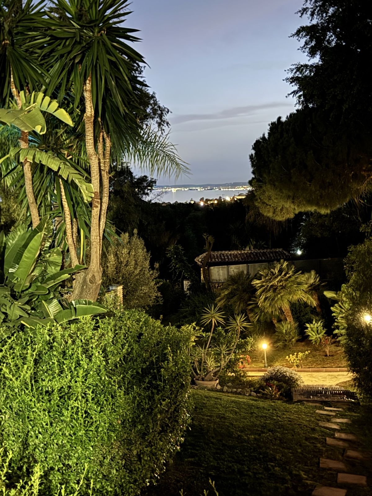 Les jardins de la villa offrent un cadre exceptionnel pour profiter du plein air, avec une grande piscine, des espaces de détente ombragés, des arbres matures et des jardins paysagers. Depuis la terrasse principale, la vue imprenable sur la mer contribue à l'atmosphère de détente.