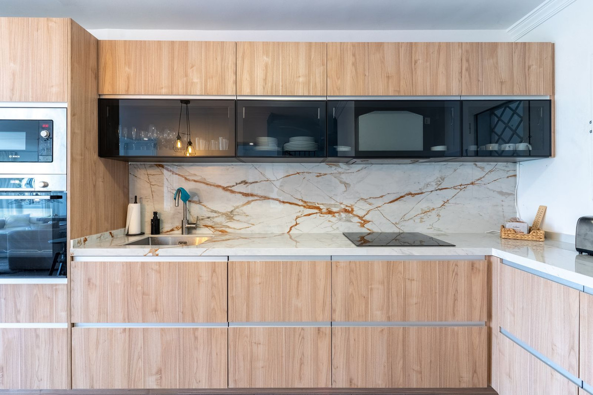 Les espaces de vie ouverts s'ouvrent naturellement sur les terrasses, où les vues sur la mer et la montagne font partie du quotidien.