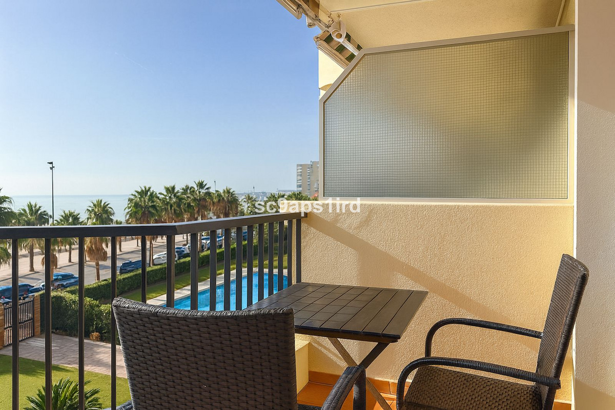 Cet appartement idéalement situé au deuxième étage bénéficie d'une position privilégiée en première ligne sur le Paseo Marítimo à Fuengirola, juste en face de la plage et à quelques pas de la gare de Carvajal.