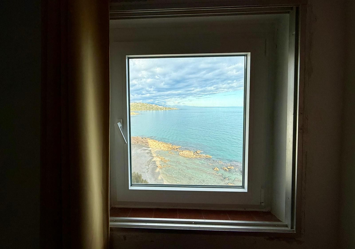 Cet appartement de type C (les plus spacieux) a été réaménagé en un grand T3 (2 chambres, 1 salle de bain). (Surface habitable d'environ 130 m², terrasses couvertes et parties communes comprises). Ce bien est exceptionnel grâce à trois atouts : 1) une vue imprenable sur la mer, Gibraltar et l'Afrique ; 2) un vaste séjour ouvert donnant sur une terrasse avec vue sur mer ; et 3) une rénovation complète : fenêtres neuves, cloisons déplacées et salle de bain entièrement refaite.