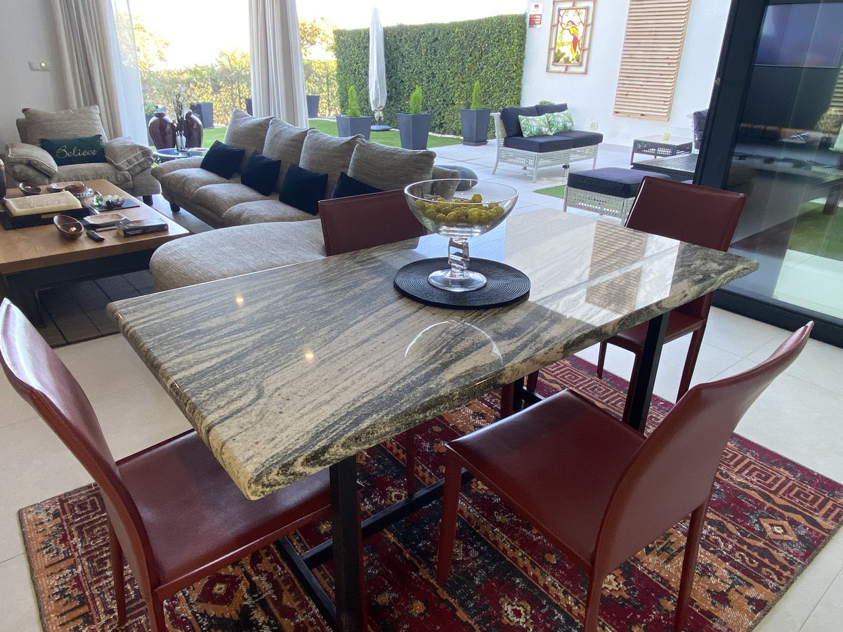 La suite parentale comprend un dressing et une terrasse privée, complétée par deux chambres supplémentaires idéales pour les invités ou la famille. Sols en marbre, menuiseries haut de gamme et climatisation intégrale garantissent confort et élégance dans toute la maison.