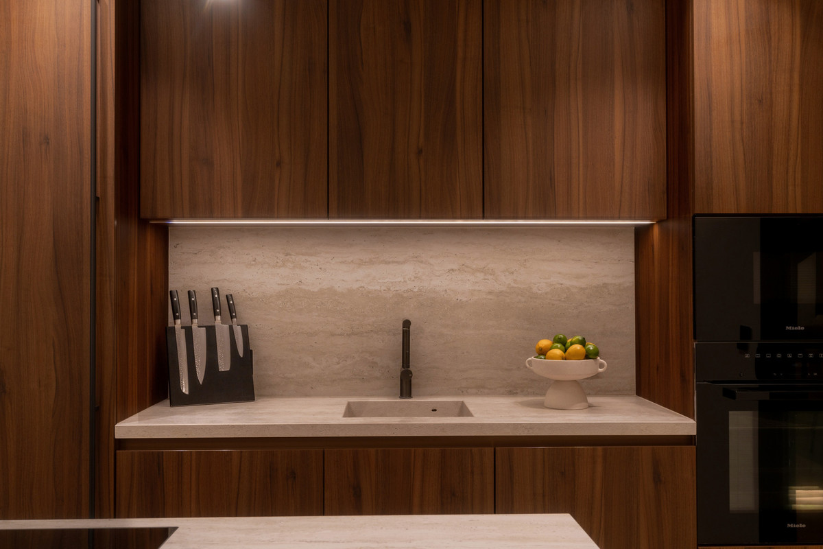 En entrant, vous découvrirez trois chambres, chacune avec sa propre salle de bain complète, ainsi qu'une grande table à manger et un salon spacieux avec des meubles sur mesure fabriqués par Aldecora.