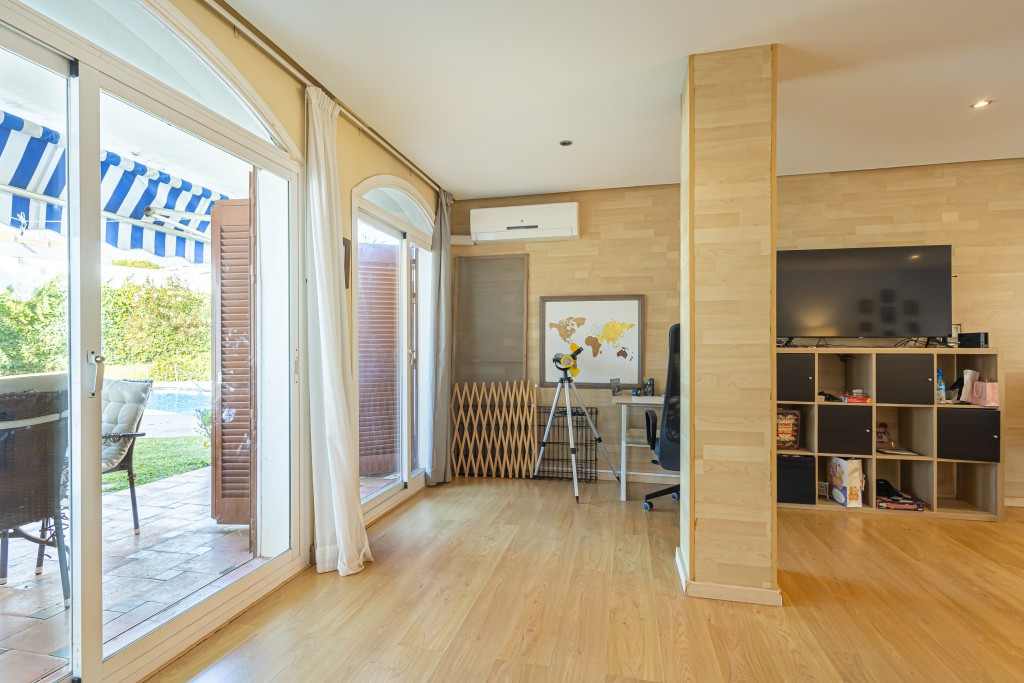 Appartement duplex spacieux avec accès direct au jardin et à la piscine, situé à côté du supermarché Supercor Express et de toutes les commodités, ainsi que de la plage et du restaurant Max Beach (à environ 250 mètres).