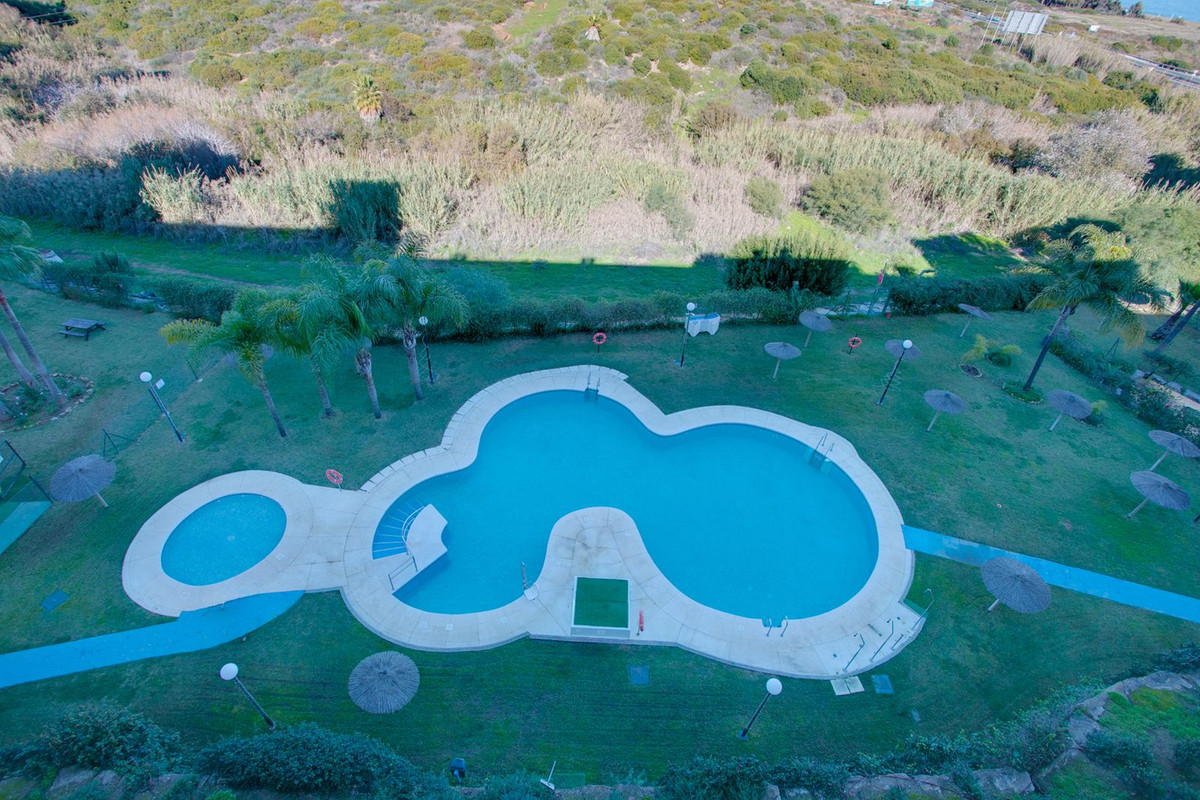 Cet appartement de 128 m² habitables comprend une terrasse couverte de 11 m² et un solarium de 21 m² offrant une vue imprenable sur la mer Méditerranée et le rocher de Gibraltar. Au rez-de-chaussée se trouvent deux chambres avec placards intégrés, une salle de bains rénovée, des toilettes invités et une cuisine neuve entièrement équipée ouverte sur un séjour lumineux avec accès direct à la terrasse. À l'étage, la troisième chambre dispose d'une salle de bains privative et d'un accès direct au solarium.
