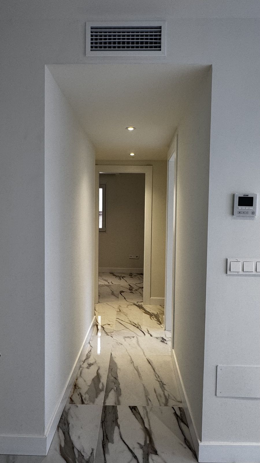 Éclairage LED intégré et points lumineux stratégiques dans les couloirs et les pièces principales.