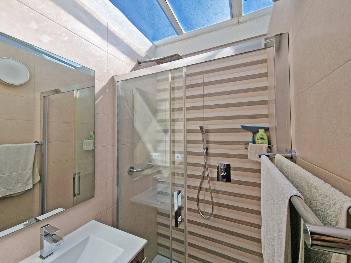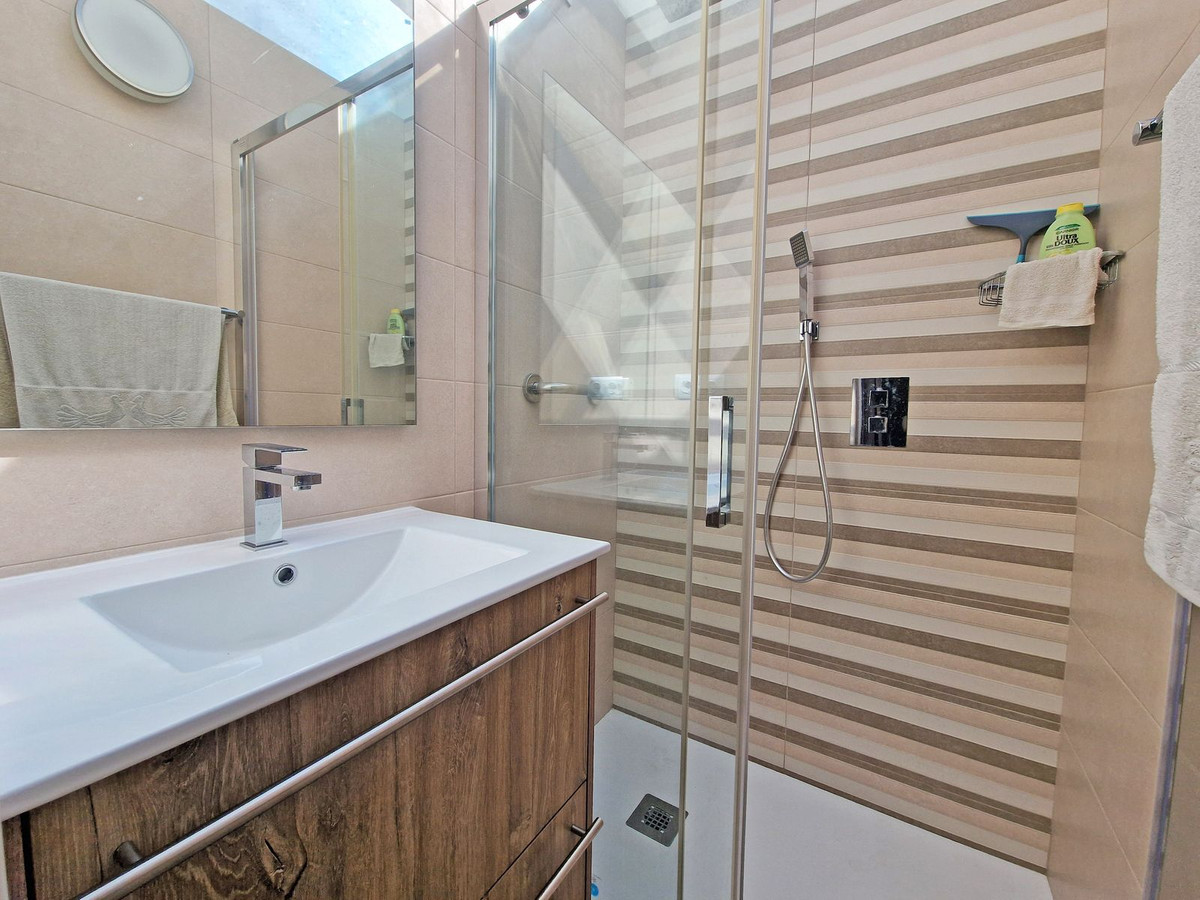 Au rez-de-chaussée, avec un accès indépendant depuis l'entrée principale, se trouve un appartement indépendant, idéal pour générer des revenus locatifs (il dispose d'une licence touristique valide) ou pour accueillir famille et amis. Ce niveau comprend une chambre, une salle de bains entièrement rénovée et une agréable terrasse ensoleillée exposée plein sud, parfaite pour profiter du climat exceptionnel de la Costa del Sol tout au long de l'année.