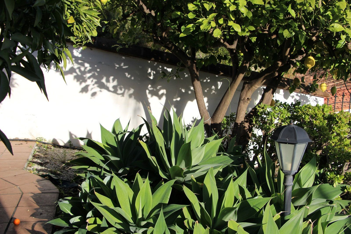 À l'extérieur, un jardin facile d'entretien agrémenté de terrasses. Une piscine privée d'eau salée, un espace couvert aménagé, une douche et des toilettes séparées. À gauche de la maison se trouve un espace barbecue, et à droite, des arbres fruitiers matures et une allée menant au parking supplémentaire, fermé par un portail. À l'arrière de la propriété, un local de rangement contenant un adoucisseur d'eau donne accès à la propriété.