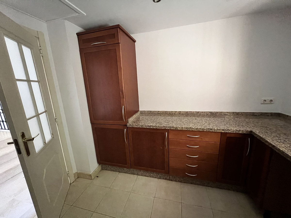 Au rez-de-chaussée, vous trouverez un vaste séjour/salle à manger baigné de lumière naturelle, une cuisine indépendante pouvant être ouverte sur le séjour après quelques travaux d'aménagement, des toilettes invités et une buanderie séparée. L'appartement est équipé d'une climatisation centrale et d'un sol en marbre.