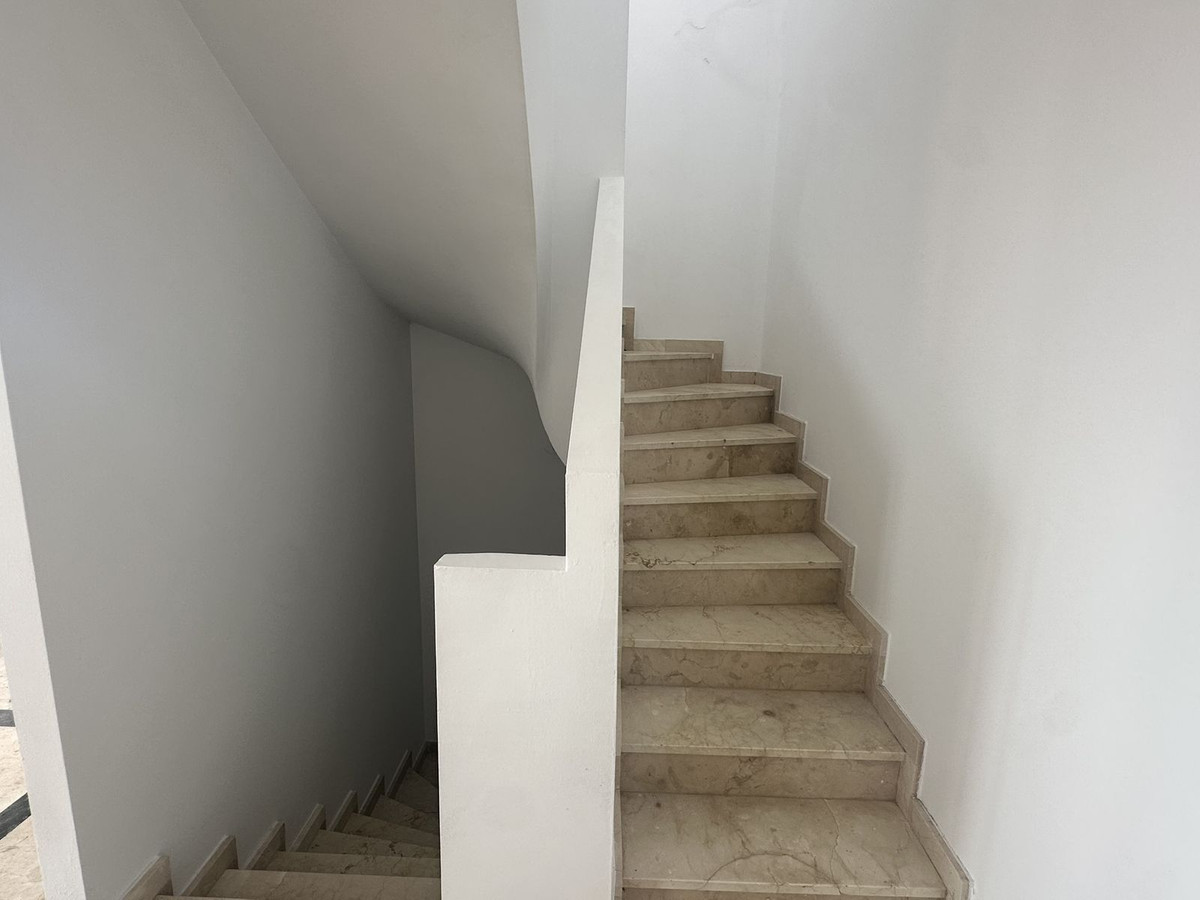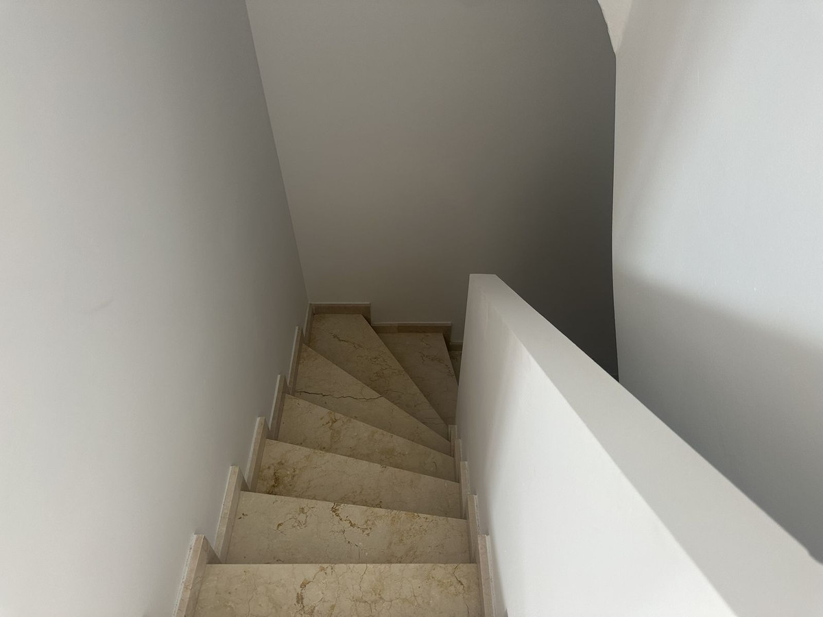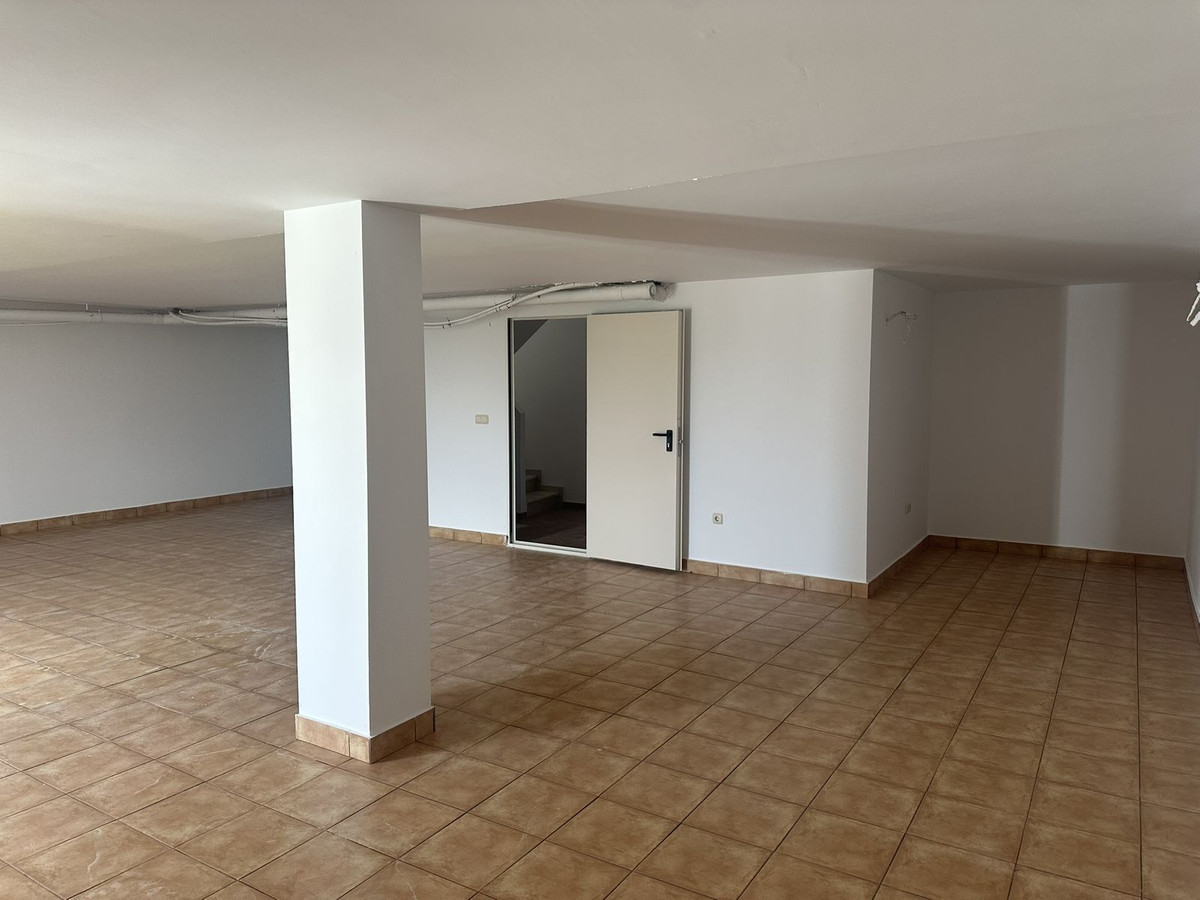 La propriété est répartie sur trois niveaux. Le sous-sol offre un grand espace modulable pouvant être aménagé en salle de jeux, salle de sport ou espace de rangement. Le rez-de-chaussée comprend un séjour-salle à manger lumineux, une cuisine équipée, une buanderie et des toilettes invités, ainsi qu'une véranda ou une terrasse couverte idéale pour profiter du climat de la Costa del Sol.