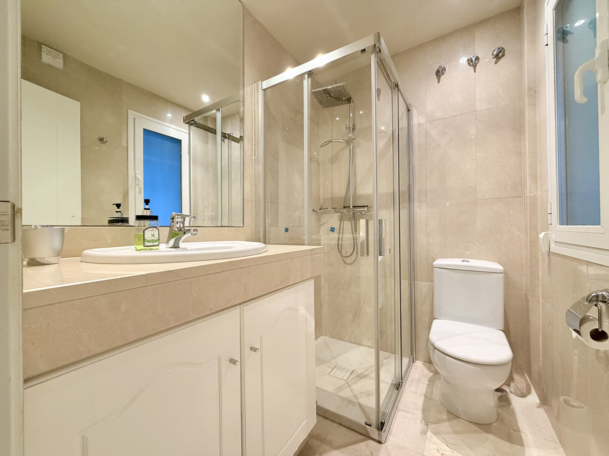 Ce bien comprend un séjour/salle à manger lumineux s'ouvrant sur une superbe terrasse privative de 100 m², idéale pour profiter pleinement de la vie en plein air face à la mer. Il offre deux chambres et deux salles de bains, en bon état et bénéficiant d'une disposition confortable et fonctionnelle.