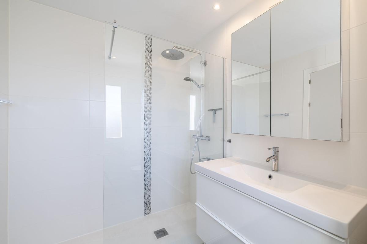 Le deuxième étage comprend trois chambres, toutes dotées de placards intégrés. La chambre principale, avec vue sur la mer, dispose d'une salle de bains attenante spacieuse et rénovée, tandis que les deux autres chambres partagent une deuxième salle de bains également entièrement rénovée.