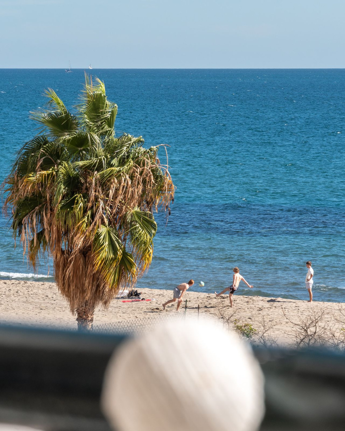 L'appartement est très agréable et possède une terrasse spacieuse offrant une vue imprenable sur la plage de Fuengirola. On peut s'y installer confortablement et observer l'animation de la plage et de la promenade tout en savourant une coupe de cava.