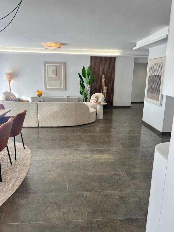 Appartement exclusif rénové avec vue mer et montagne à Los Pacos, Fuengirola. Nous vous présentons ce magnifique bien situé à Los Pacos, l'un des quartiers résidentiels les plus prisés de Fuengirola, réputé pour son calme, son excellent réseau de transports et sa proximité avec les écoles internationales, les centres sportifs et tous les services. Entièrement rénové dans un style moderne et fonctionnel, cet appartement de plus de 200 m² habitables se compose de quatre chambres spacieuses et de quatre salles de bains, ce qui en fait une option idéale pour les familles et les investisseurs en quête d'un excellent rendement. Grâce à son orientation et sa position en hauteur, il bénéficie d'une vue imprenable sur la mer et la montagne, ainsi que d'une luminosité exceptionnelle tout au long de la journée. Il dispose d'une terrasse spacieuse et d'un balcon privatif, espaces parfaits pour profiter du climat et du cadre environnant. L'appartement est livré entièrement meublé et équipé, avec des finitions haut de gamme, des placards intégrés, la climatisation et le chauffage électrique, garantissant un confort optimal en toute saison. Située au sein d'un complexe résidentiel privé avec piscine commune, jardins bien entretenus et parking privé avec accès sécurisé, cette propriété allie intimité, confort et un emplacement exceptionnel, à quelques minutes seulement des écoles, des clubs de paddle-tennis, des commerces et des restaurants.