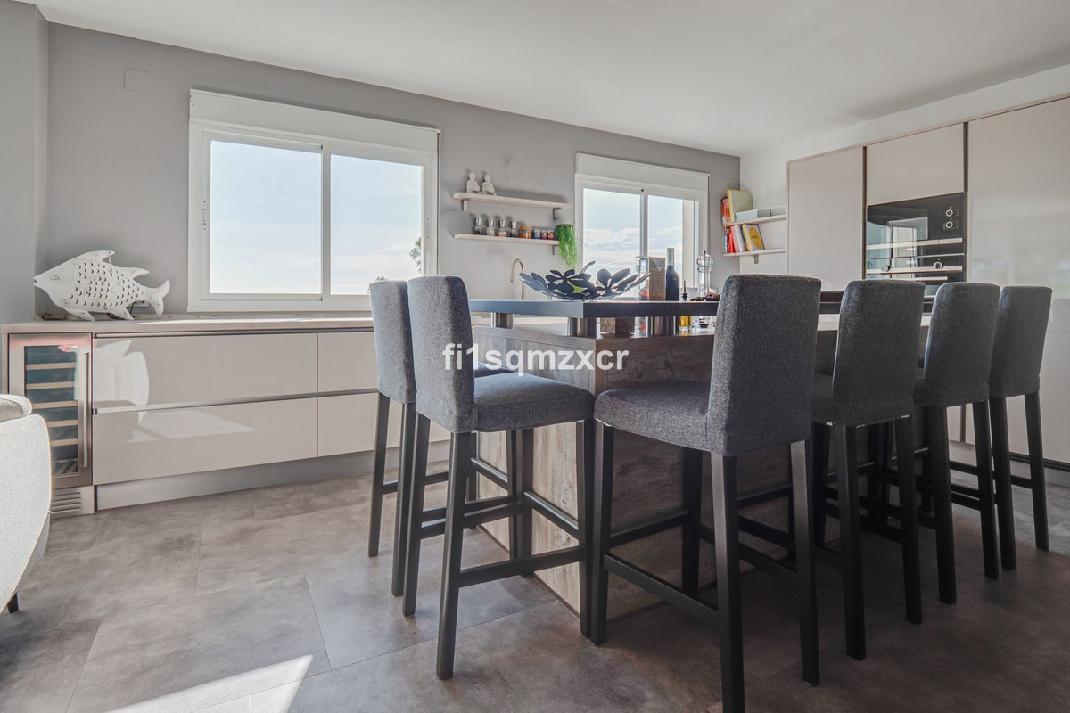 Ce penthouse d'angle unique, offrant une vue extraordinaire, se situe à quelques minutes à pied de l'une des plus belles plages de Marbella, réputée pour ses clubs de plage, chiringuitos et restaurants de plage haut de gamme. Entièrement repensé et modernisé avec des matériaux de la plus haute qualité, il bénéficie d'une vue spectaculaire sur l'ensemble du littoral, l'Afrique et les montagnes. Au quatrième étage : un hall d'entrée avec escalier menant à l'étage, des toilettes invités, une cuisine moderne neuve avec bar et électroménager haut de gamme, un coin TV avec poêle à bois pour des soirées romantiques, une grande salle à manger en L avec vue panoramique, une chambre et une salle de bains spacieuse.