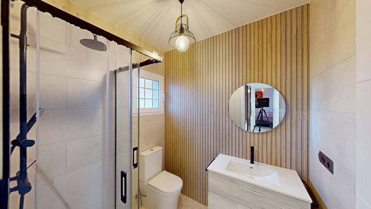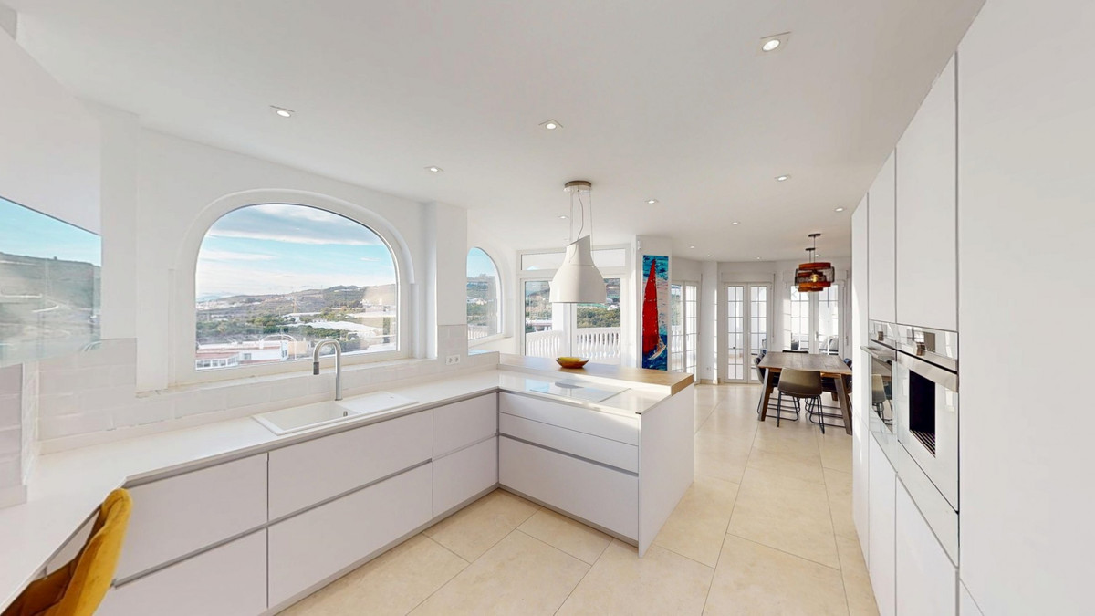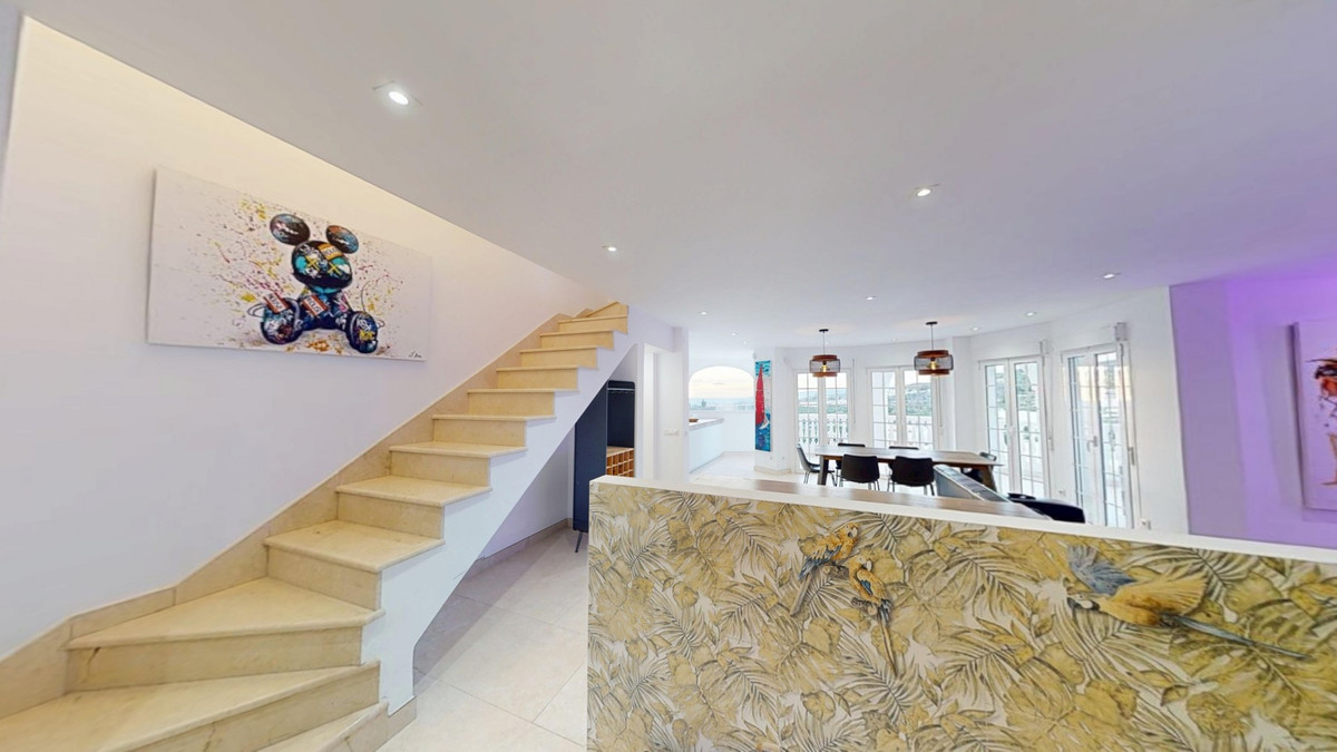 Cette spectaculaire villa à Torrox se distingue par ses volumes généreux, sa luminosité et ses vues imprenables sur la mer et les montagnes, offrant un cadre idéal pour profiter du calme et du style de vie méditerranéen. Au rez-de-chaussée, deux chambres avec salles de bains privatives, dont une avec dressing, ainsi qu'une salle de bains séparée pour plus de confort, complètent l'ensemble. Le séjour-salle à manger avec cuisine ouverte est spacieux et baigné de lumière grâce à ses grandes baies vitrées offrant une vue imprenable sur la mer et les montagnes. De ce niveau, on accède à une agréable terrasse couverte, parfaite pour se détendre en toute saison. À l'étage, une grande chambre donne accès à une terrasse privative offrant une vue à couper le souffle. L'ensemble de la maison se distingue par sa grande luminosité et ses espaces généreux. À l'extérieur, une cuisine d'été avec four à pizza est idéale pour les réunions et les moments de détente en plein air. Au rez-de-jardin, une vaste terrasse, une cuisine d'été, une piscine et un appartement d'invités offrent un espace indépendant et modulable. L'appartement d'hôtes comprend un séjour/salle à manger avec kitchenette, une salle de bain complète et une chambre spacieuse, idéale pour accueillir famille ou amis en toute intimité. De plus, la propriété bénéficie d'un grand abri voiture, offrant confort et espace supplémentaire. Une maison unique et lumineuse aux multiples possibilités, située dans un quartier privilégié de Torrox, idéale comme résidence principale ou investissement. Nous sommes ravis de pouvoir vous présenter prochainement ce bien, en personne ou par visite virtuelle. Car ce monde est unique, à l'image de notre Axarquía. En Andalousie. Sur la Costa del Sol. Ici, sous le soleil…