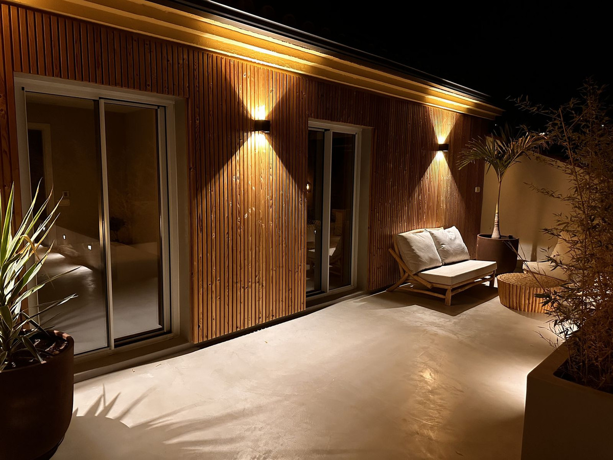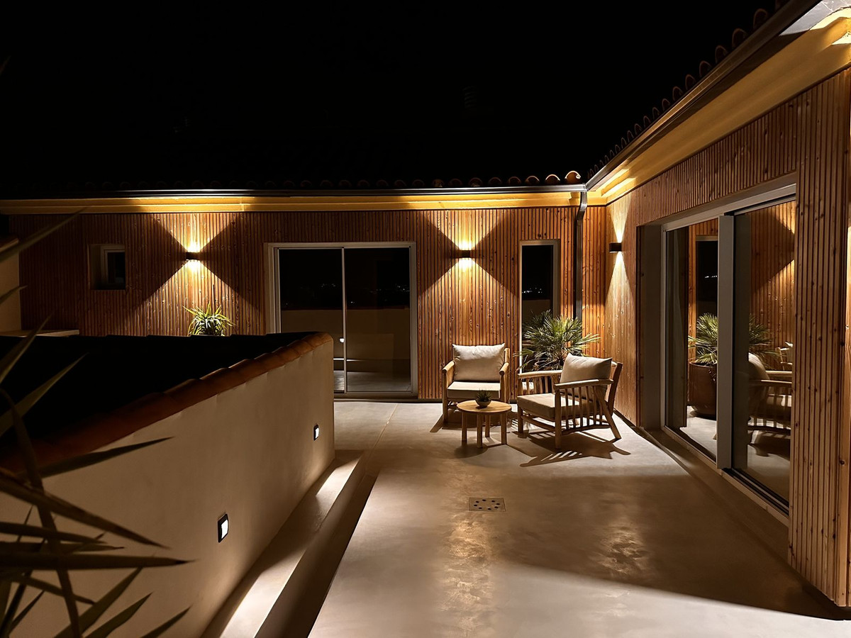 La propriété s'étend sur 273 mètres carrés, dominés par une impressionnante terrasse de 138 mètres carrés. Cet espace extérieur exceptionnel est conçu pour un confort optimal, offrant une vue panoramique imprenable sur la Méditerranée scintillante et les majestueuses montagnes environnantes. La terrasse est également équipée d'arrivées d'eau, d'évacuation et d'électricité pour l'installation d'un jacuzzi privé et de stores.