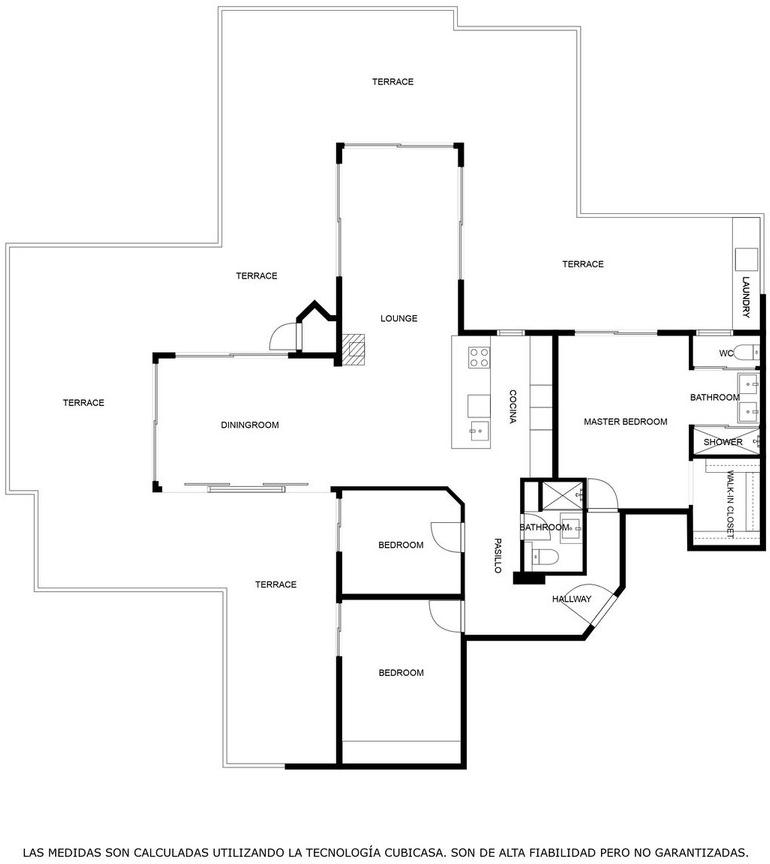 3 chambres, 2 salles de bains, surface construite 135 m², terrasse 138 m².