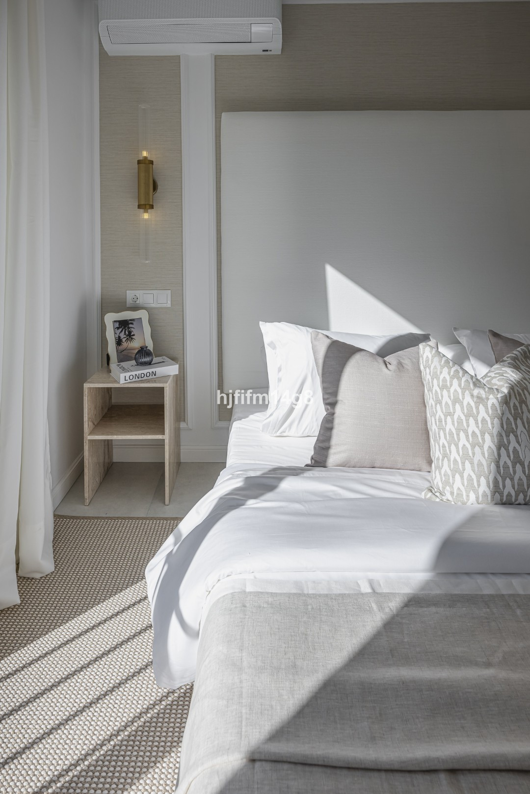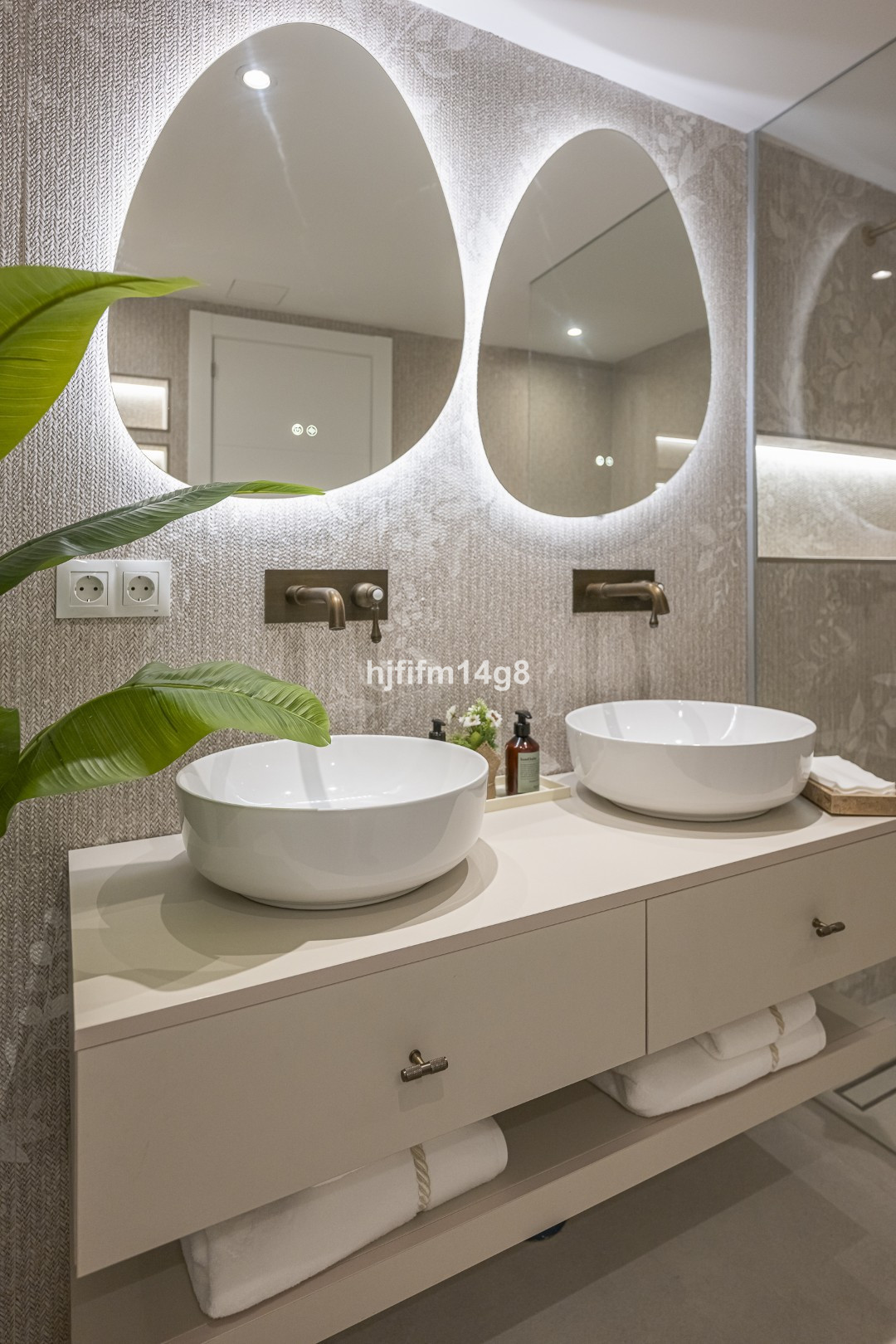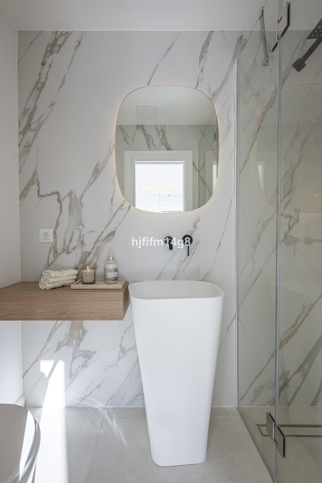 L'étage supérieur abrite une élégante suite parentale avec salle de bains privative et une chambre d'amis également dotée d'une salle de bains privative. Ces espaces comprennent des dressings sur mesure et des meubles de salle de bains personnalisés, avec des finitions raffinées, notamment des tables de chevet en travertin dans la chambre faisant face à la suite parentale. Toutes les salles de bains sont revêtues de carreaux grand format, tandis que les toilettes pour invités arborent de magnifiques carreaux de porcelaine texturée haut de gamme.