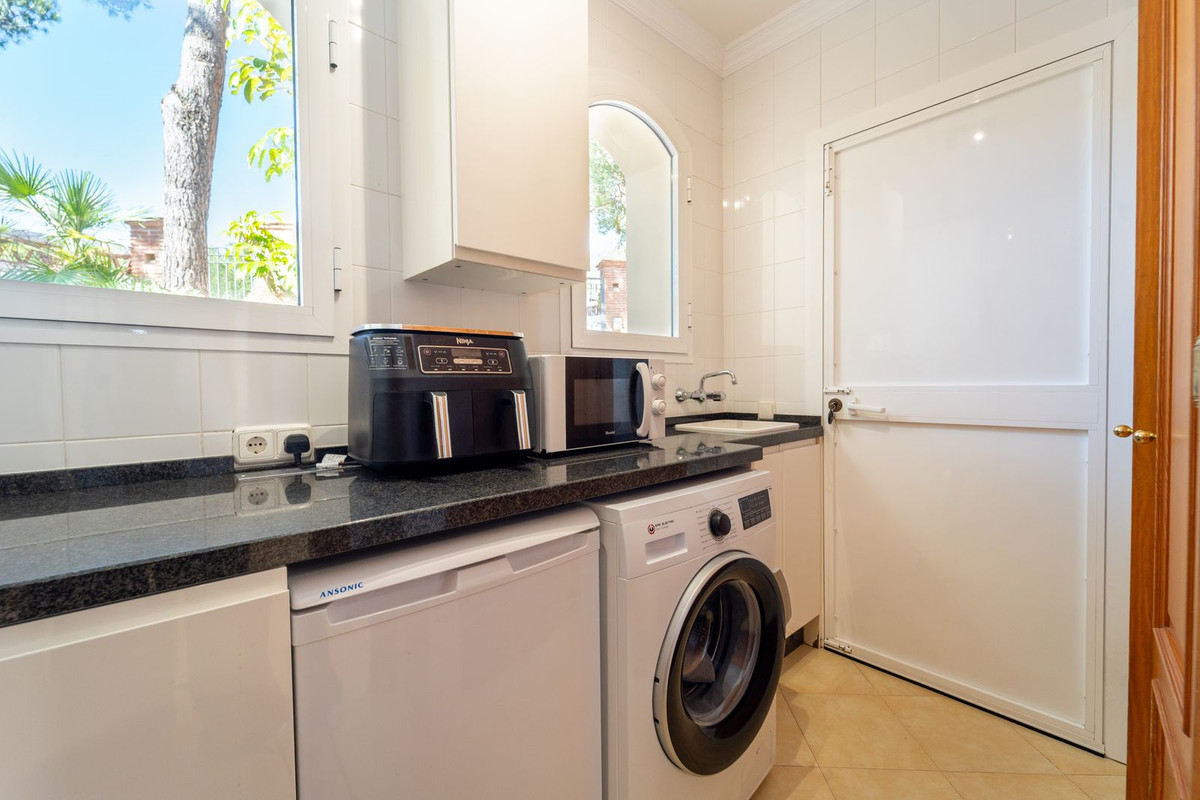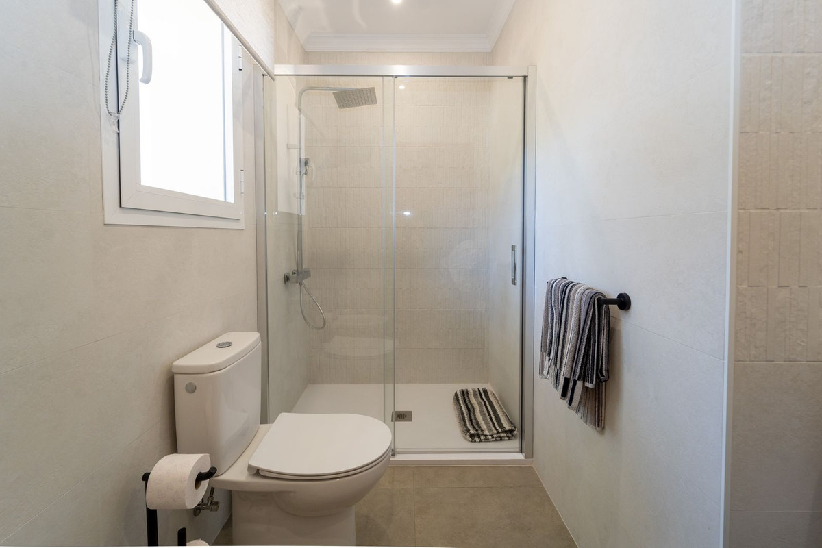 Nichée derrière un portail électrique, la villa incarne à merveille la beauté de l'architecture andalouse avec ses élégantes façades en briques et son allure classique. Une allée et un garage double indépendant permettent de garer plusieurs voitures confortablement, facilement et en toute sécurité.