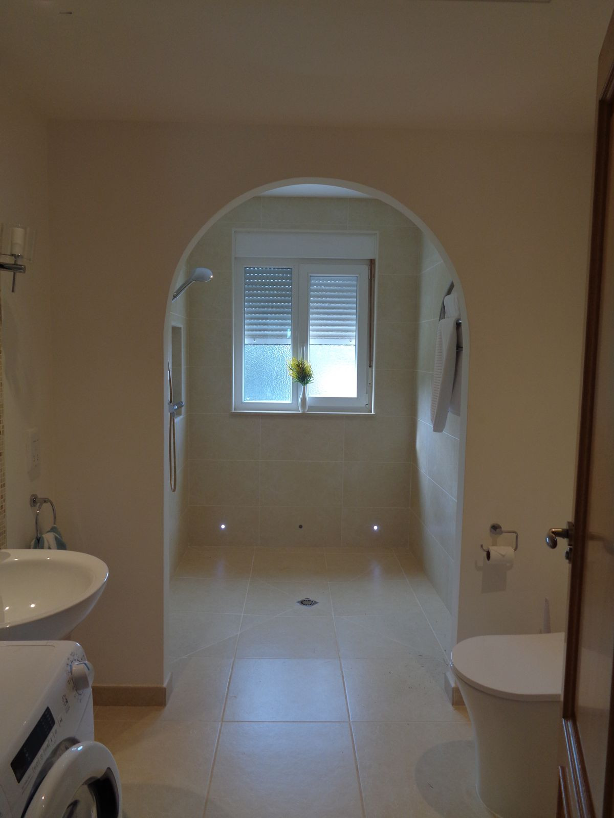 Au deuxième étage, vous trouverez également une très grande salle d'eau avec douche à l'italienne, lavabo, bidet, WC et sèche-serviettes chauffant.