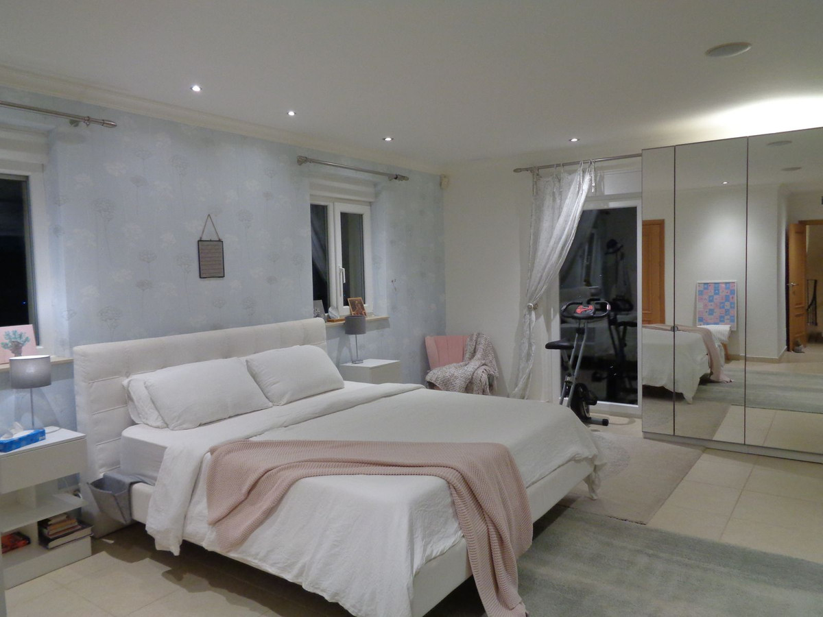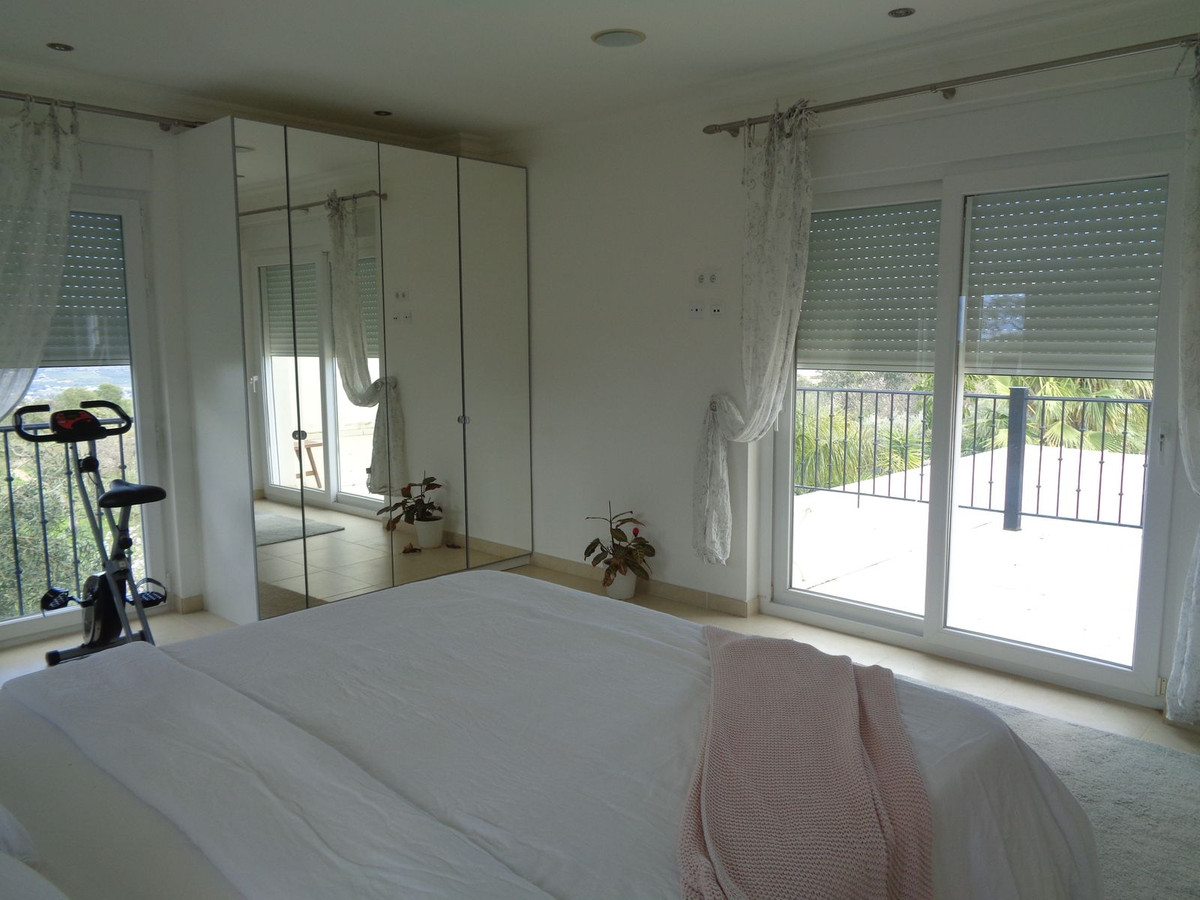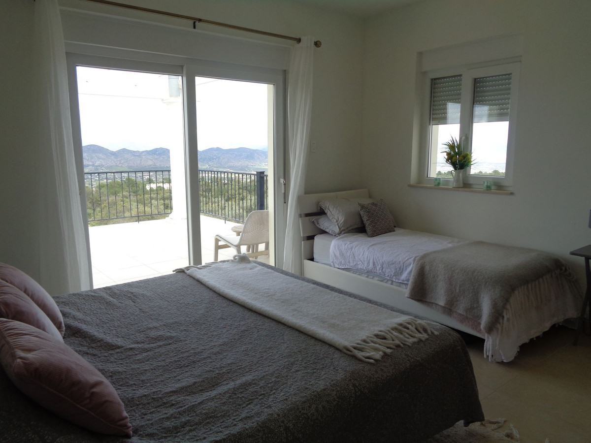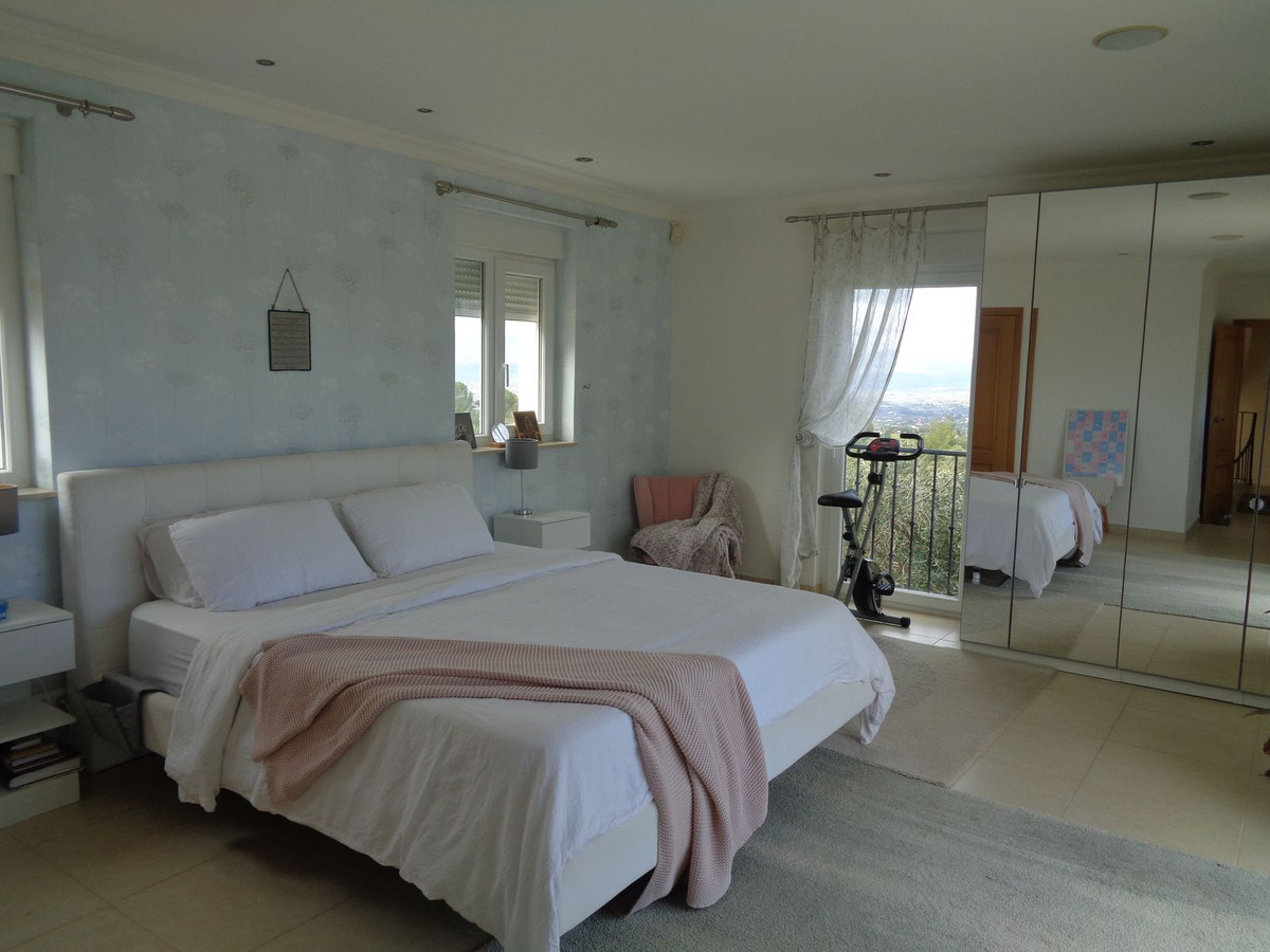 À cet étage se trouvent deux grandes chambres doubles, chacune dotée de portes-fenêtres donnant sur une terrasse privative et de fenêtres supplémentaires. La vue y est encore plus époustouflante, offrant un panorama exceptionnel sur la campagne environnante et sur la baie de Malaga.
