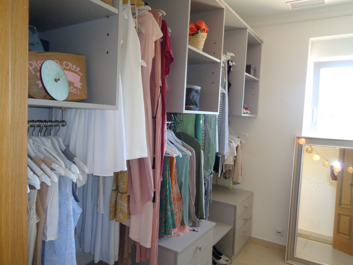 Le dressing, récemment rénové, est entièrement équipé d'étagères, de tiroirs et de tringles.