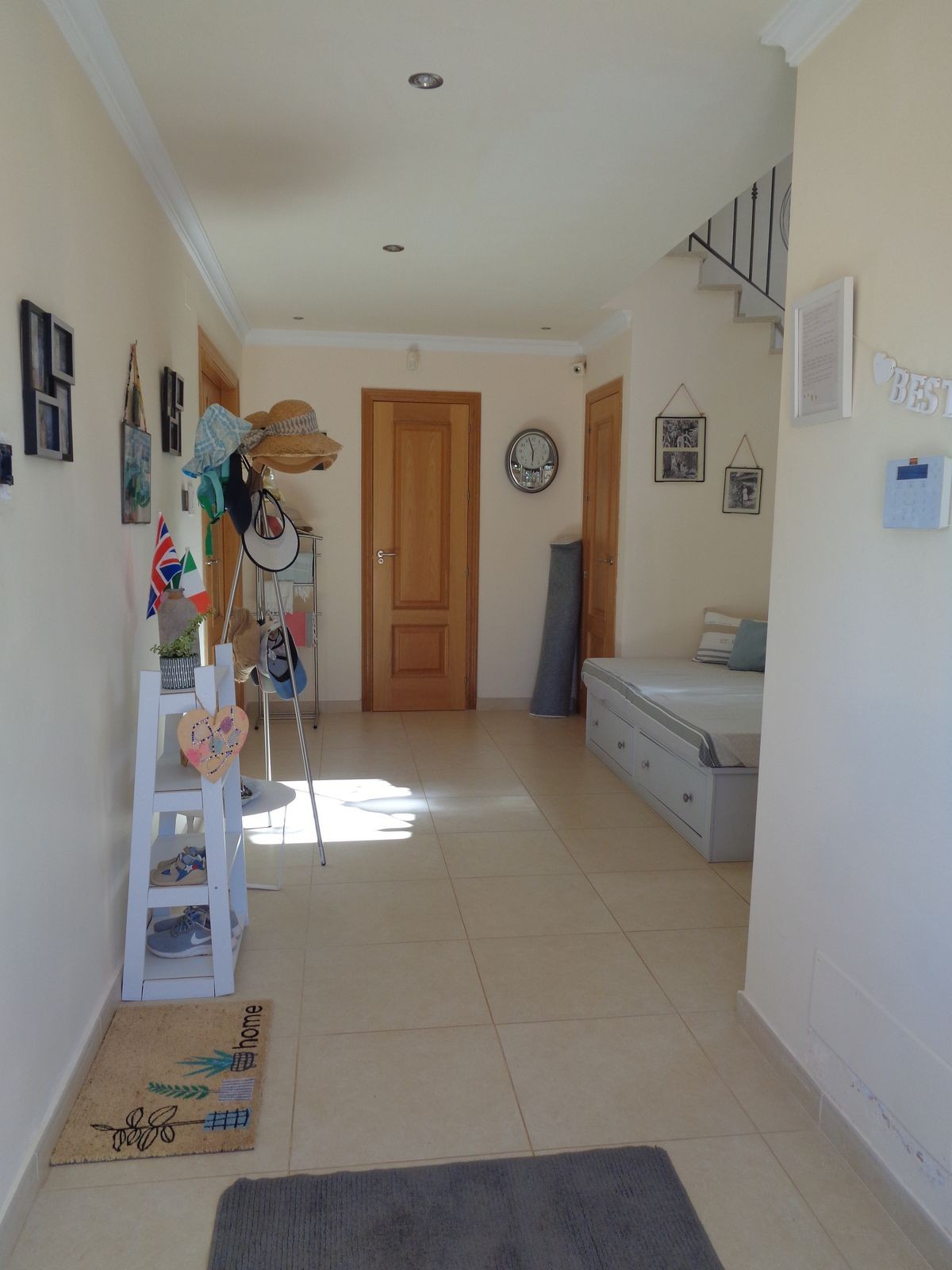 Le hall d'entrée spacieux s'ouvre sur un impressionnant escalier en colimaçon qui dessert les trois étages. Ce hall comprend également des toilettes séparées et un espace de rangement sous l'escalier.