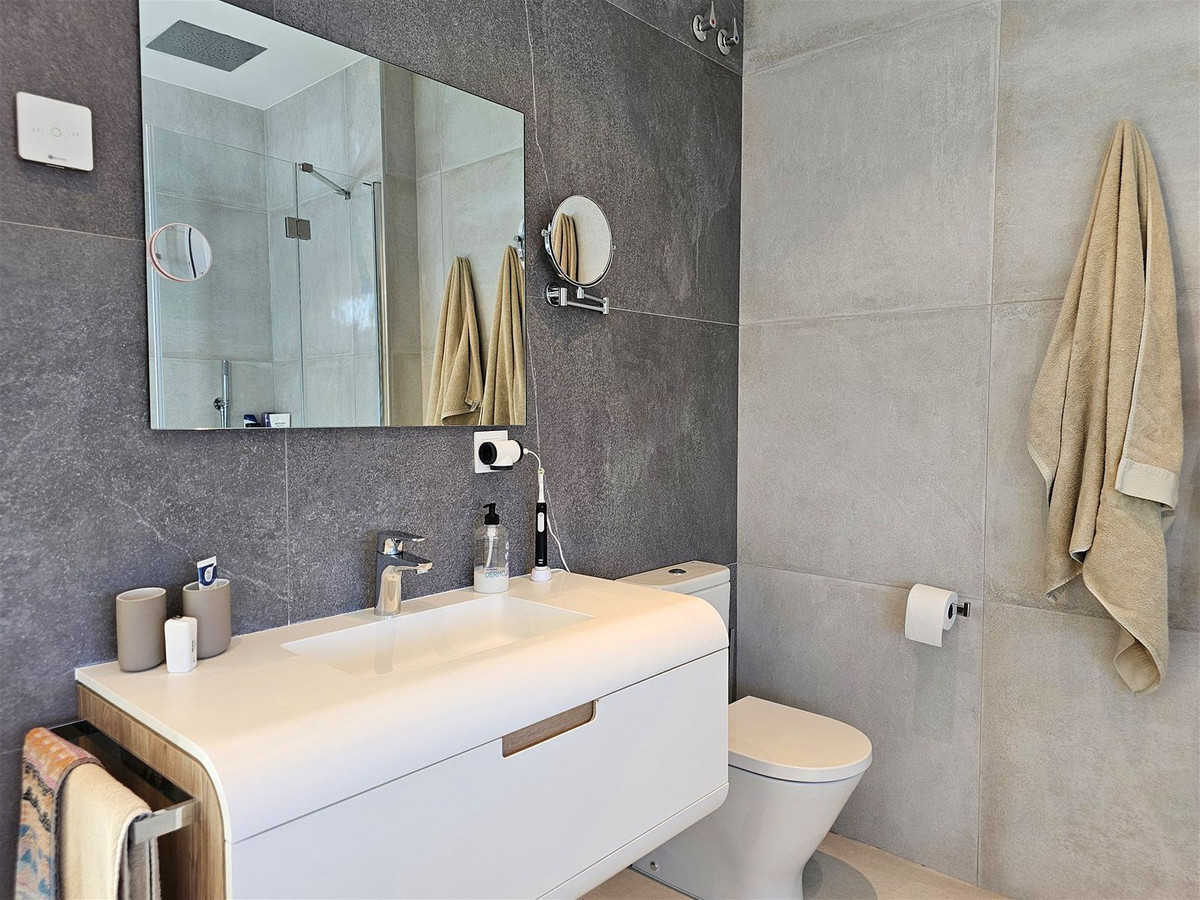 Les cinq chambres, donnant sur l'extérieur, sont dotées de grands placards intégrés. Quatre d'entre elles bénéficient de rideaux électriques, et chaque salle de bains est équipée d'un chauffage au sol. La villa comprend également la climatisation Airzone, une réserve d'eau de 1 000 litres, un système de traitement de l'eau, des vitres de sécurité anti-UV, des panneaux solaires, un système d'alarme, un coffre-fort, un sol en porcelaine de haute qualité, un barbecue à gaz et un interphone vidéo.