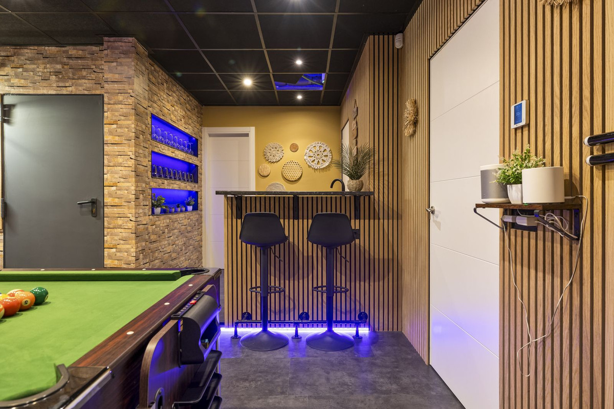 Équipements : Terrasse couverte, Placards intégrés, Terrasse privée, Sauna, Salle de jeux, Appartement d'invités, Débarras, Buanderie, Salle de bains attenante, Jacuzzi, Barbecue, Double vitrage, Domotique, Sous-sol