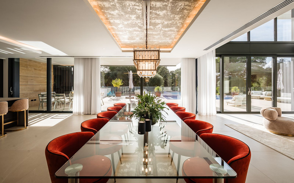 Double-height interiors, seamless indoor–outdoor areas and a stunning kitchen make it ideal for both everyday life and entertaining. With seven en-suite bedrooms, rooftop terraces, wellness areas and a serene infinity pool, it offers privacy, comfort and effortless luxury in one of Sotogrande’s most sought-after locations.