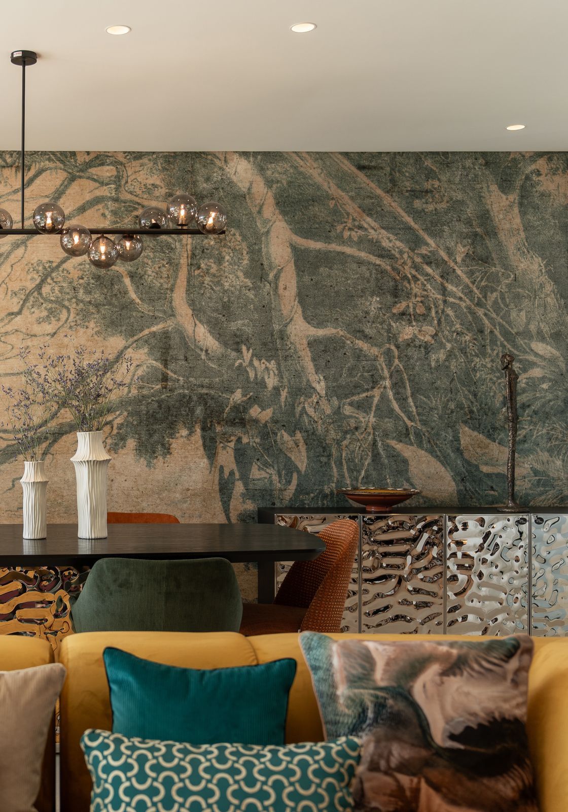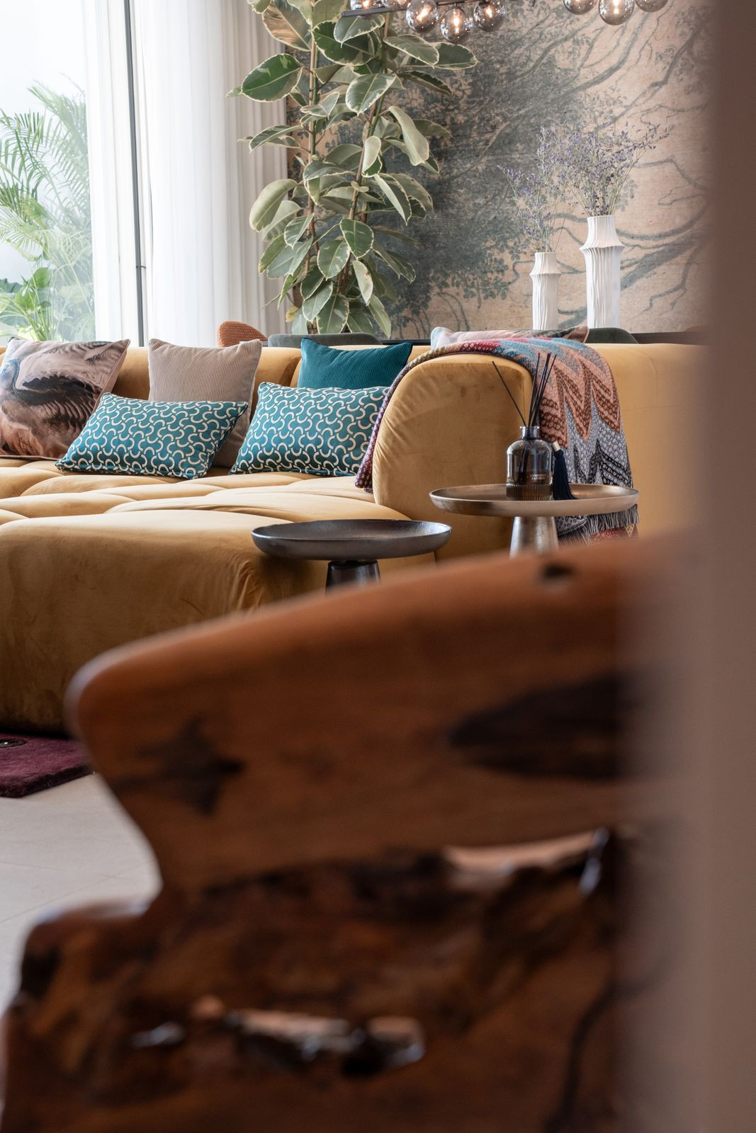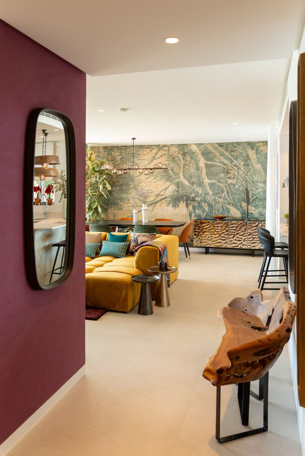The apartment offers three spacious bedrooms and 2 bathrooms, including a master suite with a walk-in wardrobe and direct access to the terrace, and a guest toilet. Finished in a warm and natural palette, the interiors combine textured walls, oak elements and stone details to create a refined yet welcoming atmosphere.