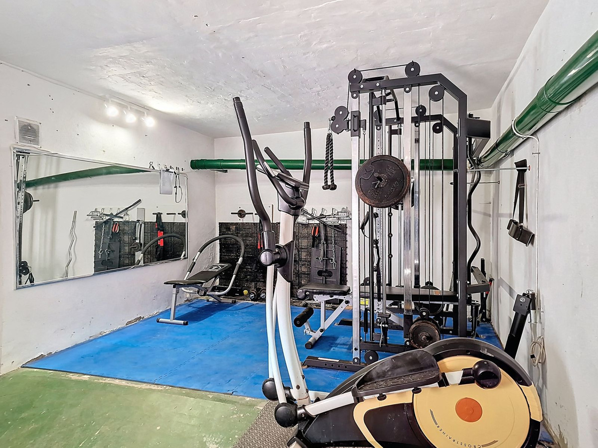 Salle de sport privée professionnelle : Située au vaste sous-sol, cette salle de sport dédiée et fixe est équipée pour un entraînement de niveau professionnel ; aucun abonnement à une salle de sport n’est requis.