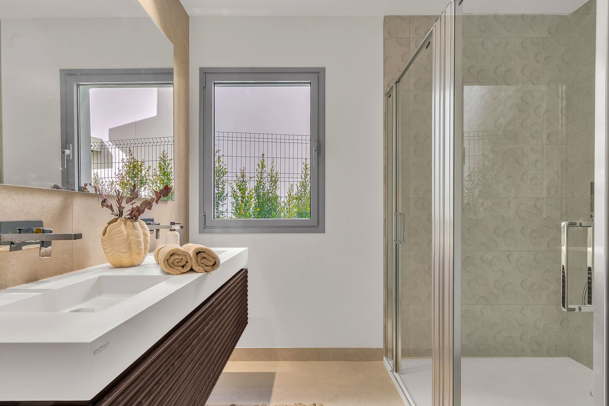 Rare maison de plain-pied surélevée de 4 chambres à Santa Clara Homes, offrant un style de vie de villa avec de généreux espaces extérieurs privés dans une communauté de luxe sécurisée à Marbella Est.