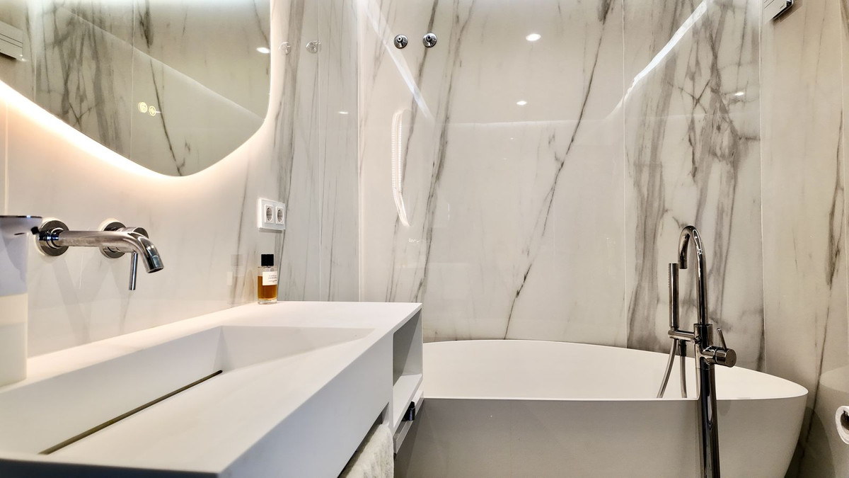 Le point fort de cette propriété réside dans son niveau supérieur : une vaste terrasse sur le toit avec jacuzzi et un second espace barbecue, offrant une vue panoramique sur la mer, La Concha et même Gibraltar. Un atout rare à ce prix, idéal pour un usage personnel ou un investissement locatif.