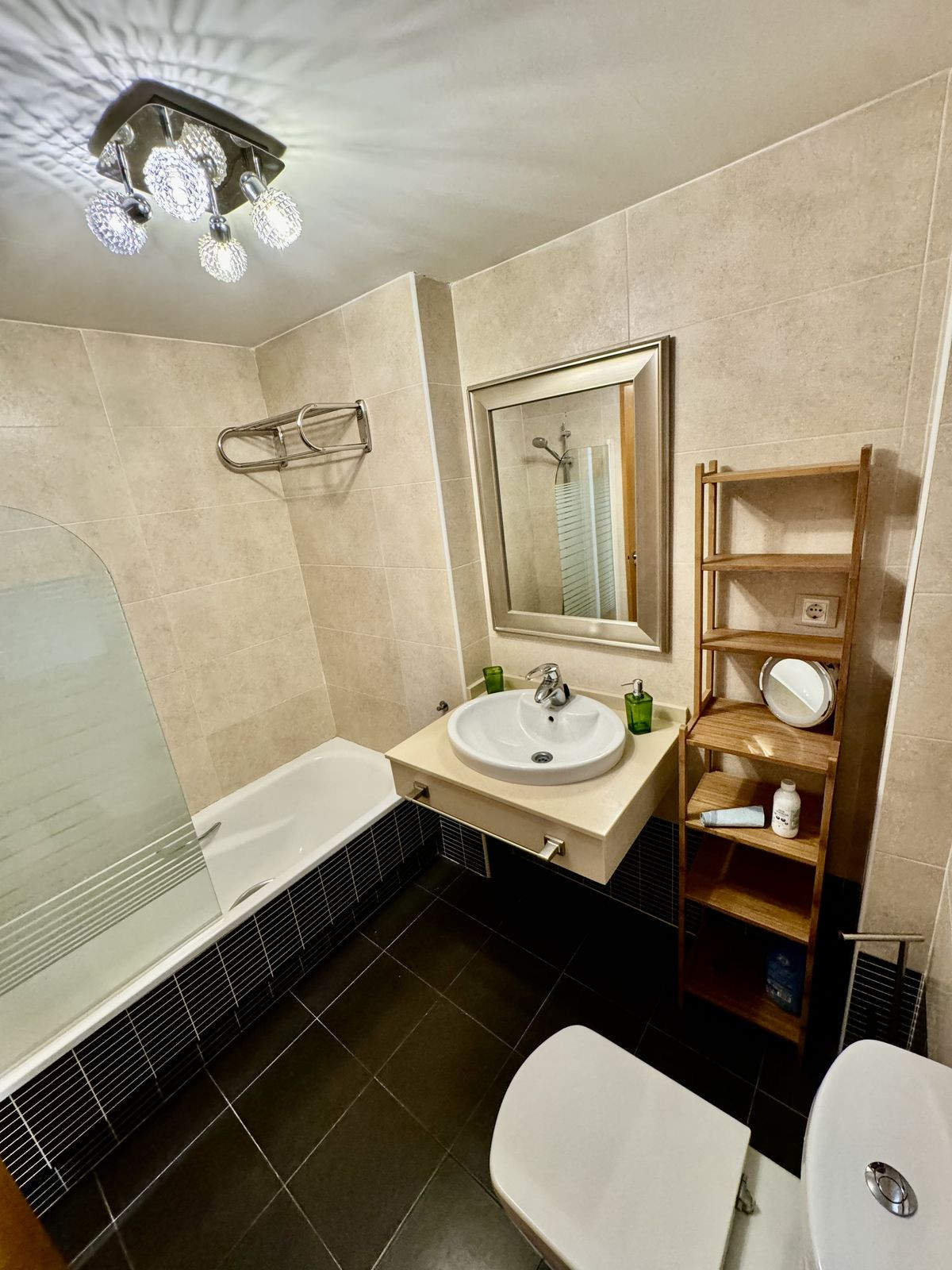 À l'intérieur, l'appartement offre un agencement confortable et bien pensé. Il comprend deux chambres, dont une élégante chambre principale avec salle de bains privative et balcon privé, un espace intime idéal pour commencer la journée baigné de lumière naturelle. La seconde chambre bénéficie d'une salle de bains moderne et fonctionnelle entièrement équipée avec douche.