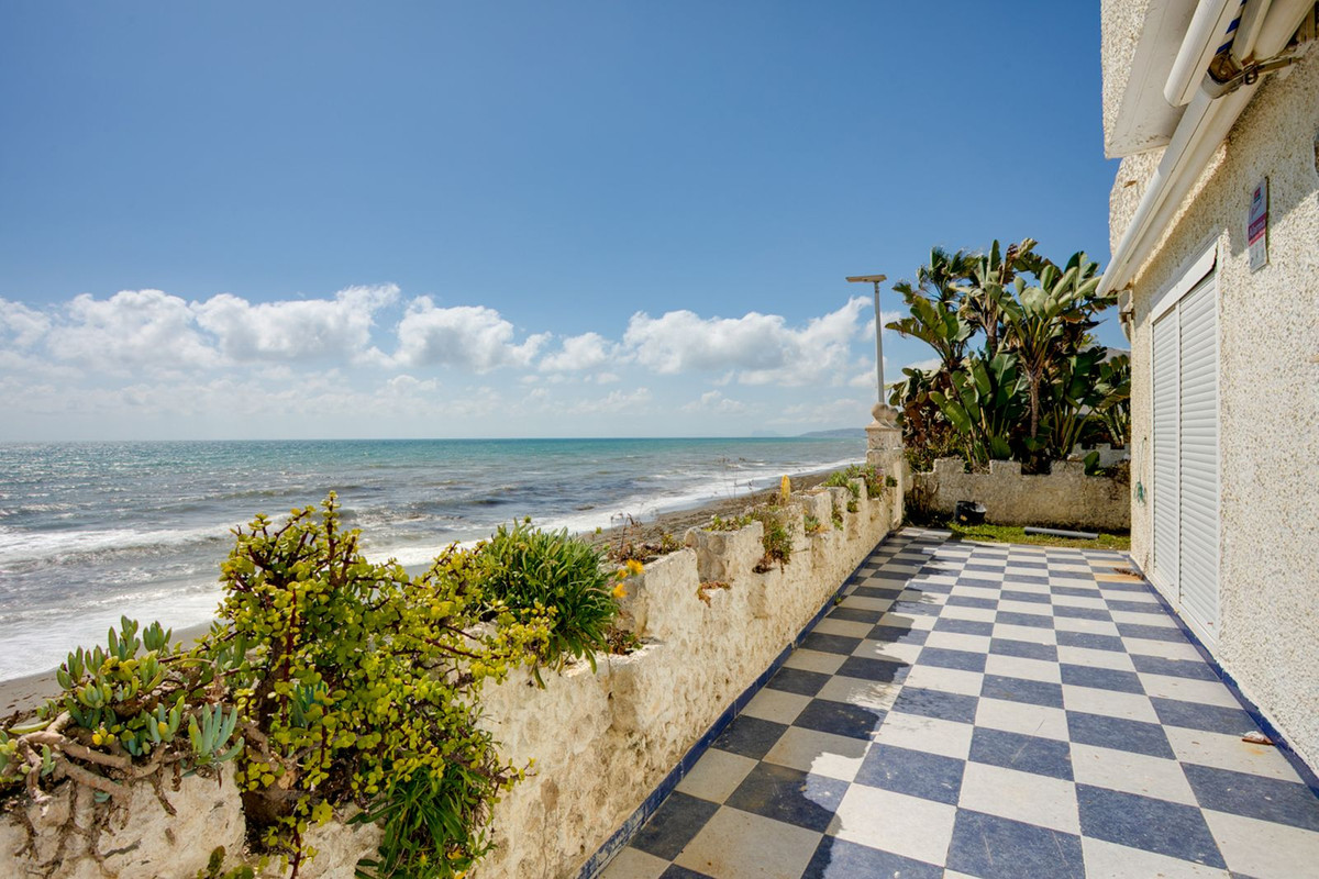 Une occasion rare d'acquérir une villa en première ligne de plage, à quelques pas seulement du port de plaisance animé d'Estepona, offrant un accès direct à la promenade et à la plage de sable fin depuis votre jardin privé.