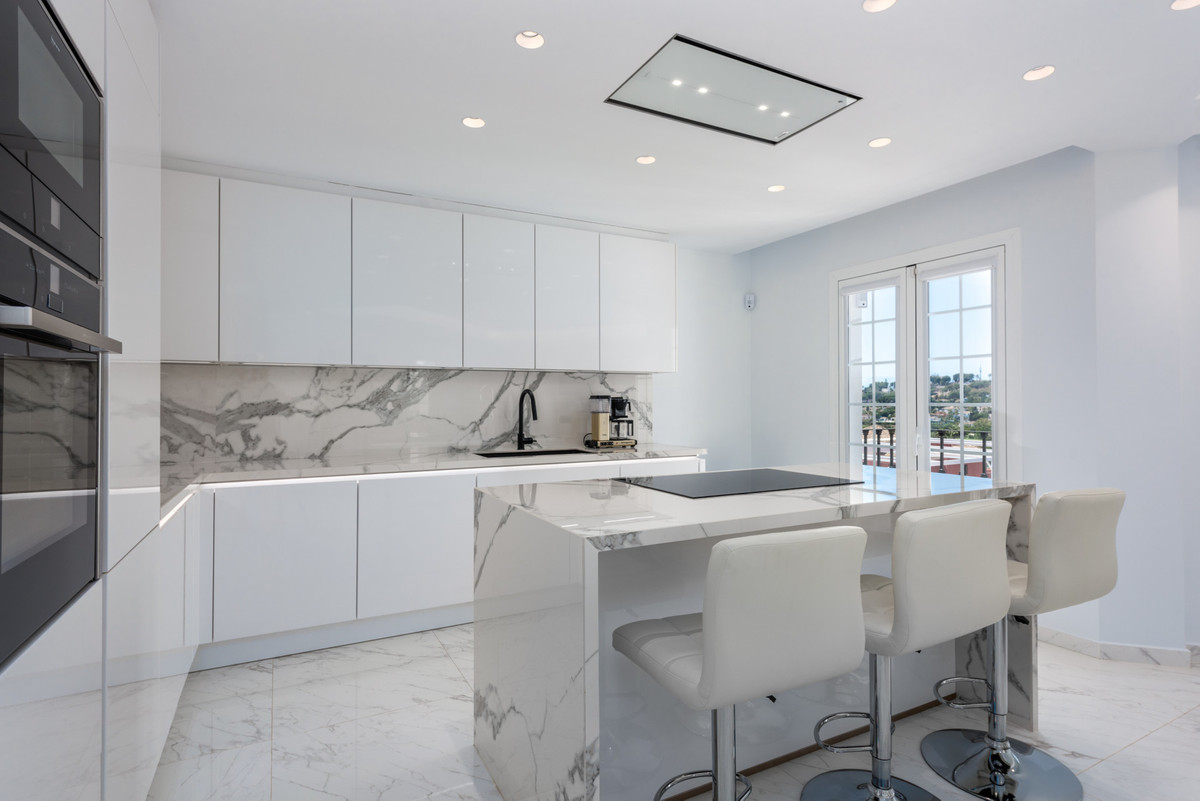 Cette maison de ville de 3 chambres, magnifiquement rénovée, est située dans une urbanisation prestigieuse au cœur de la célèbre Vallée du Golf de Nueva Andalucía.
